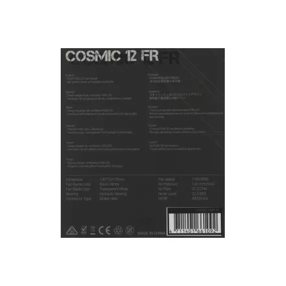 Вентилятор для корпуса Formula Cosmic 12BK RGB 120х120x25 черный 3-pin 4-pin (Molex) 22.3дБ [COSMIC 12BK FR]