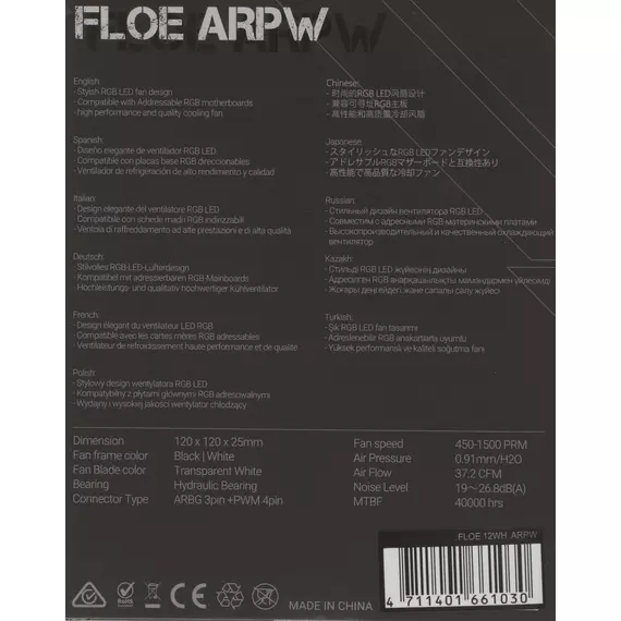 Вентилятор для корпуса Formula Floe 12WH ARGB 120х120x25 белый 4-pin 26.8дБ RTL [FLOE 12WH ARPW]