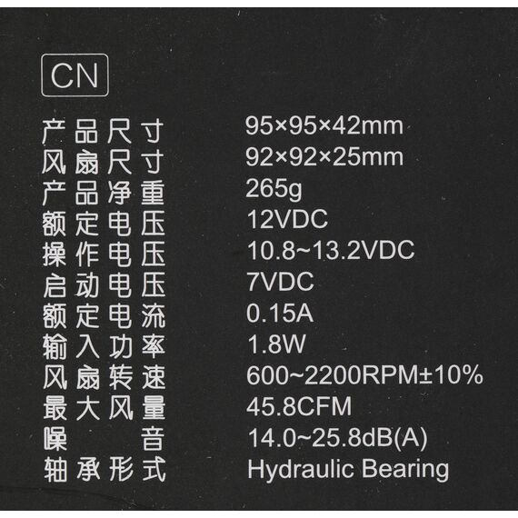 | Потребляемая мощность вентилятора | 1.8 Вт |