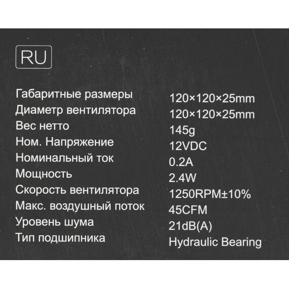 | Толщина вентилятора | 25 мм |