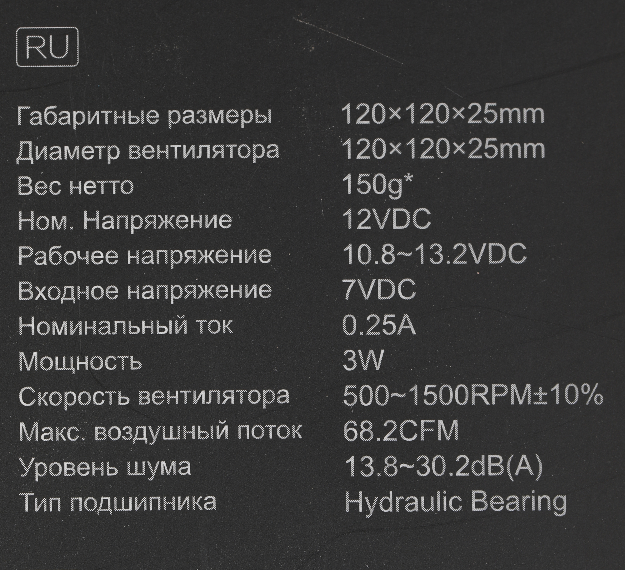 | Мин. скорость вращения вентилятора | 500 об/мин |