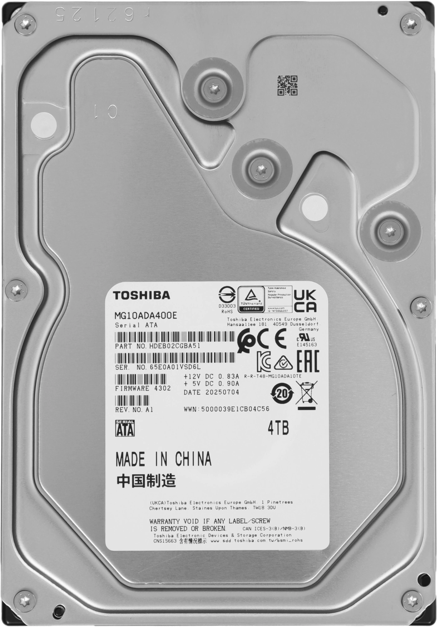Жесткий диск Toshiba 4TB Enterprise Capacity 512E SATA-III (7200rpm) 512Mb 3.5" [MG10ADA400E]