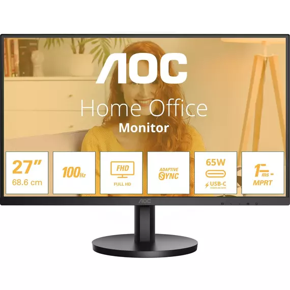 ЖК-монитор AOC Basic-Line 27B3CA2 27" IPS LED 1ms 16:9 HDMI M/M матовая 250cd 178гр/178гр 1920x1080 100Hz DP FHD USB 3.36кг черный