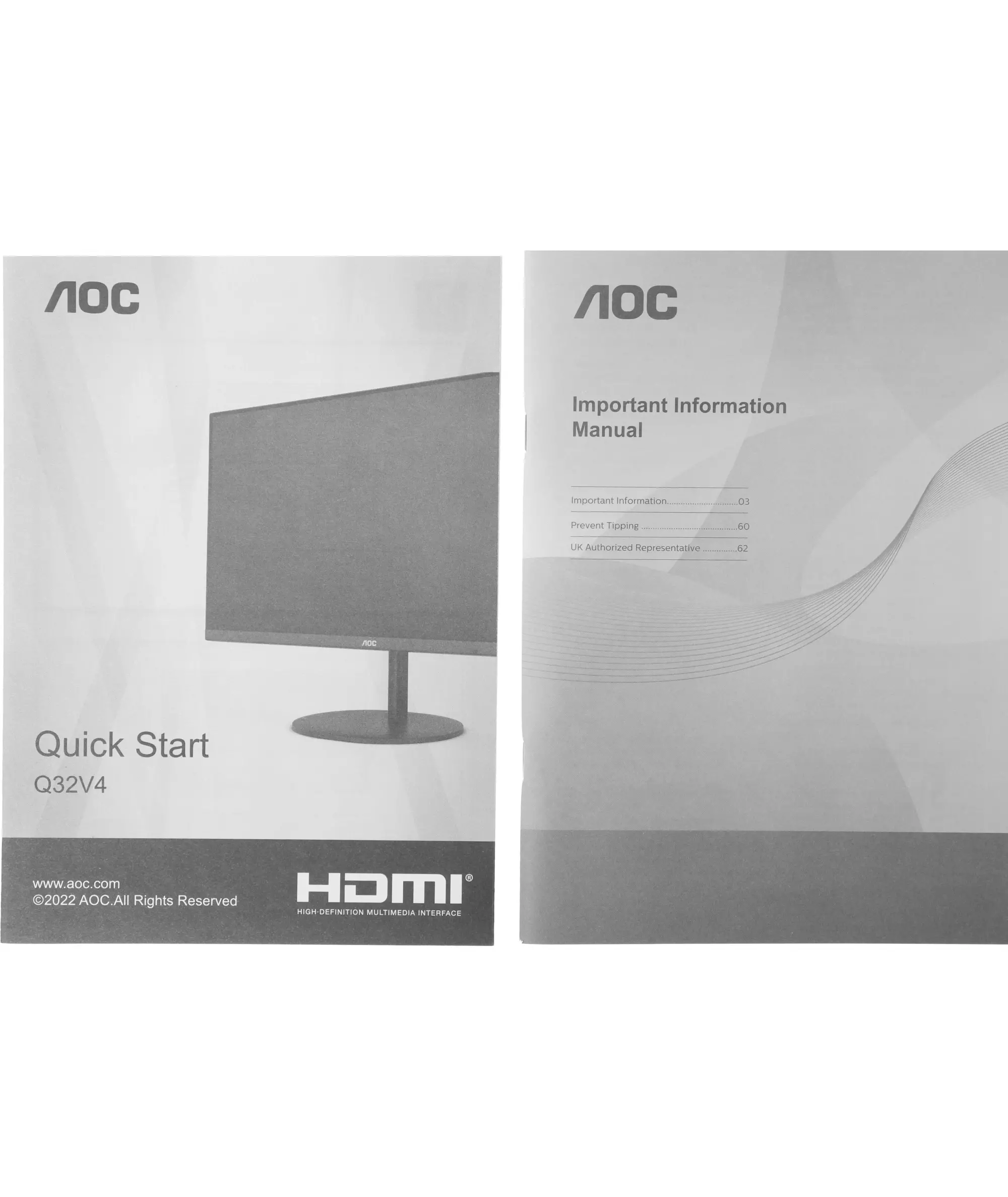 Монитор AOC Q32V4 31.5" Value Line черный IPS LED 4ms 16:9 HDMI M/M матовая 250cd 178гр/178гр 2560x1440 75Hz DP 2K 6.8кг