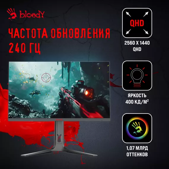 Монитор Bloody MN272Q 27" IPS LED 1ms 16:9 HDMI M/M матовая HAS Piv 400cd 178гр/178гр 2560x1440 240Hz G-Sync FreeSync DP 2K 6.55кг темно-серый