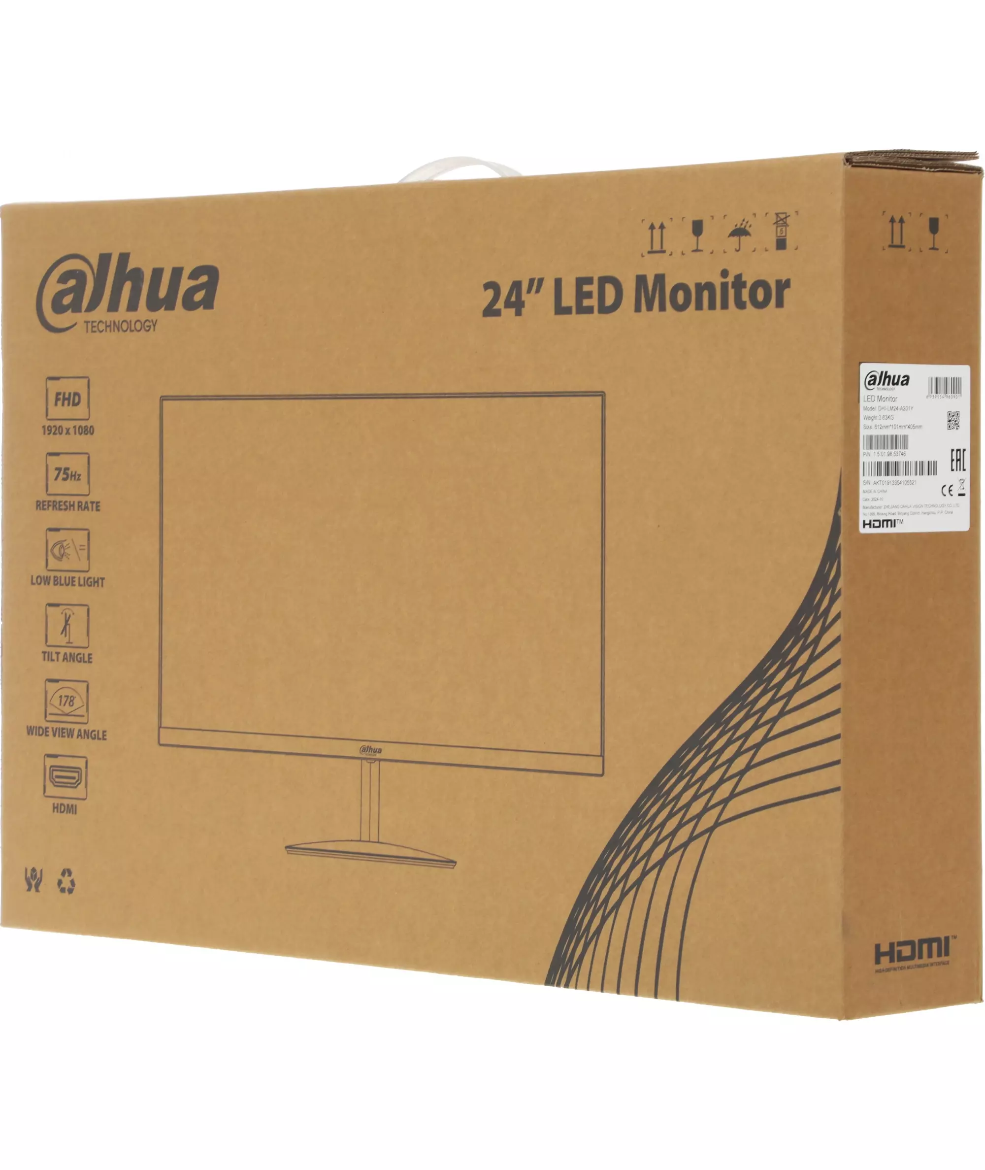 Монитор Dahua DHI-LM24-A201Y 23.8" черный IPS LED 5ms 16:9 HDMI матовая 1200:1 250cd 178гр/178гр 1920x1080 75Hz VGA FHD 2.79кг