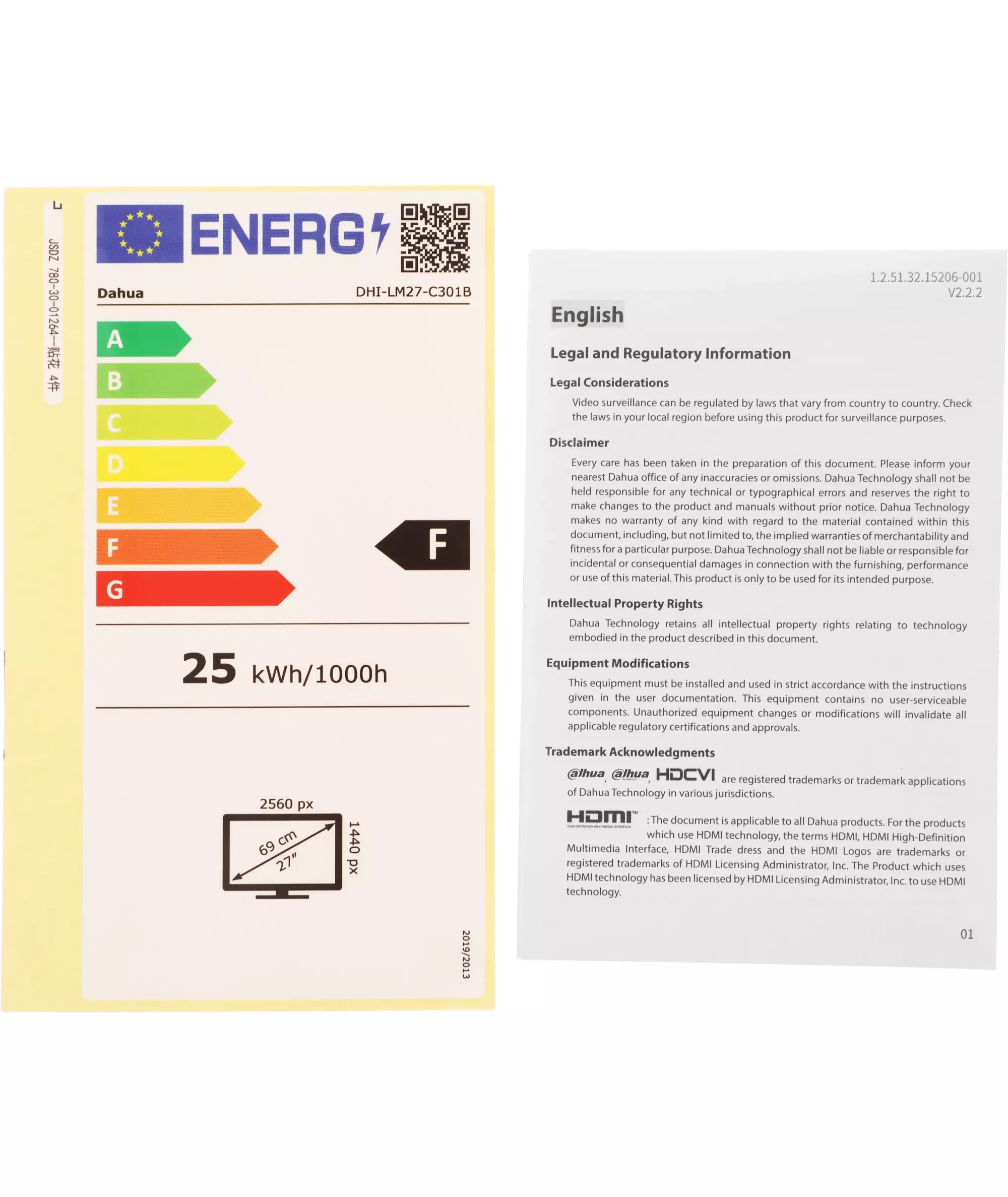 ЖК-монитор Dahua DHI-LM27-C301B 27" IPS LED 5ms 16:9 HDMI матовая 1200:1 300cd 178гр/178гр 2560x1440 100Hz DP 2K 4.8кг черный