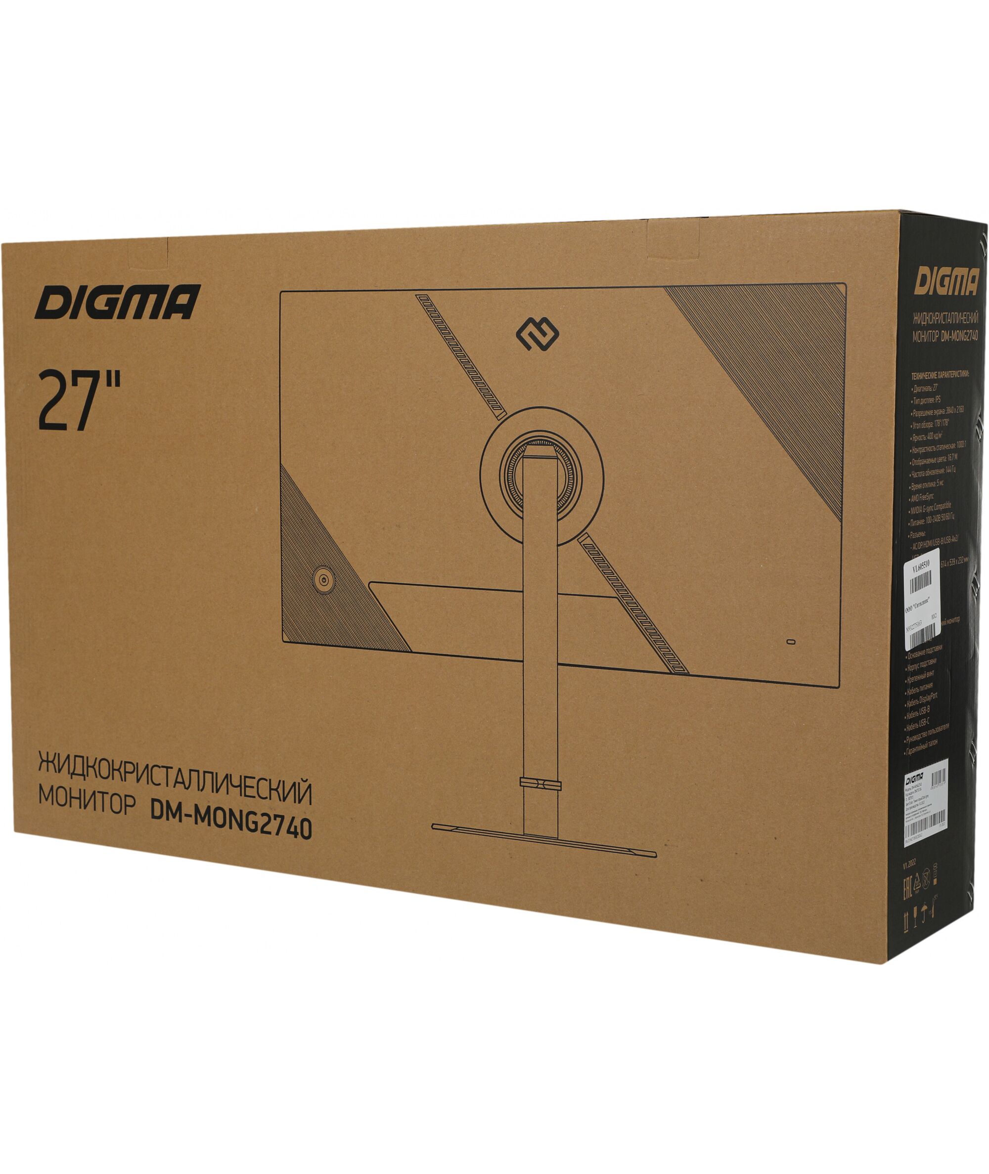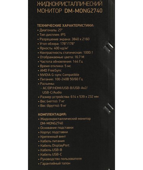Монитор Digma DM-MONG2740 27" Gaming темно-серый IPS LED 5ms 16:9 HDMI матовая HAS Piv 400cd 178гр/178гр 3840x2160 144Hz G-Sync FreeSync DP 4K USB 7кг