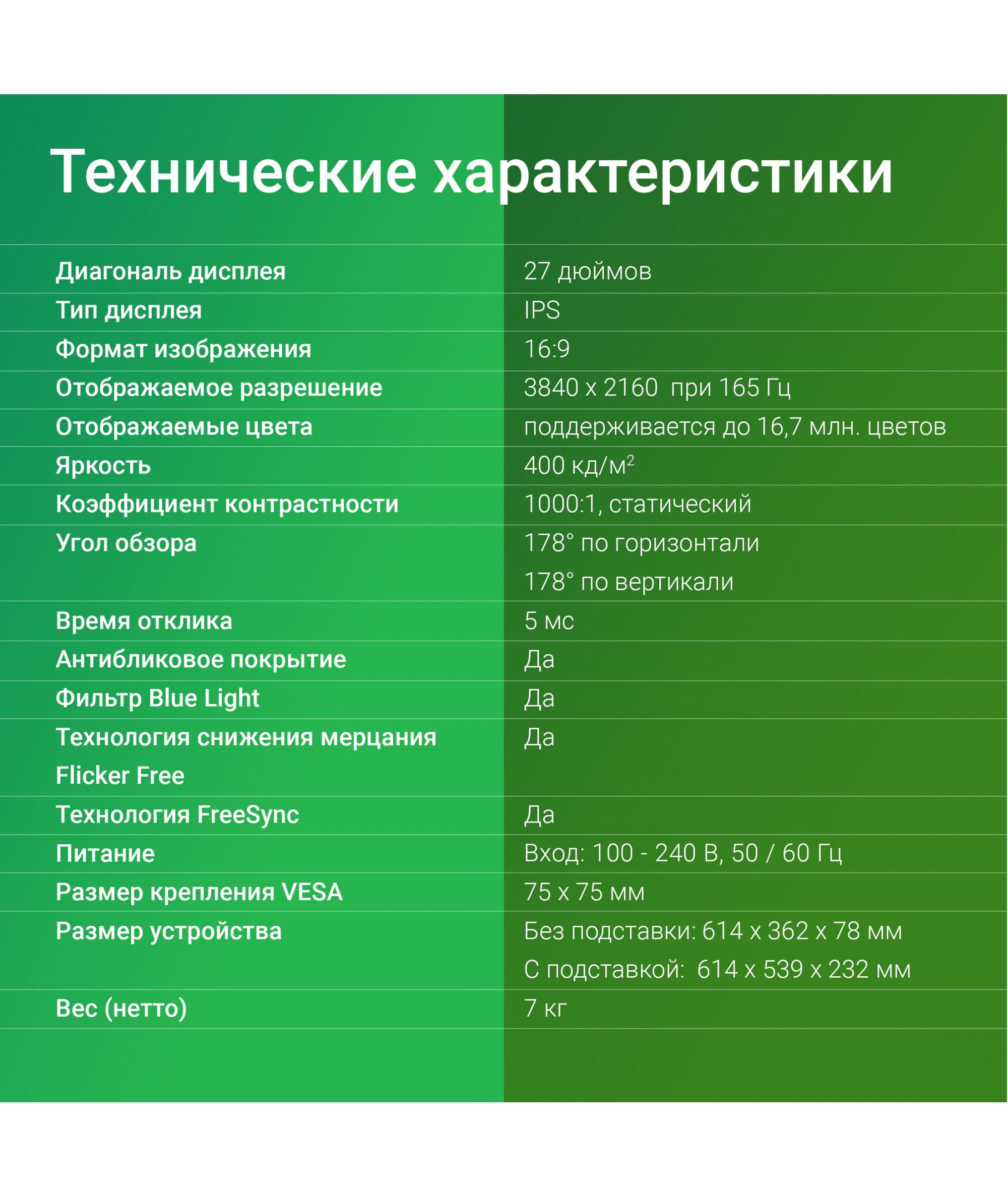 | Поддержка AMD FreeSync | Да |