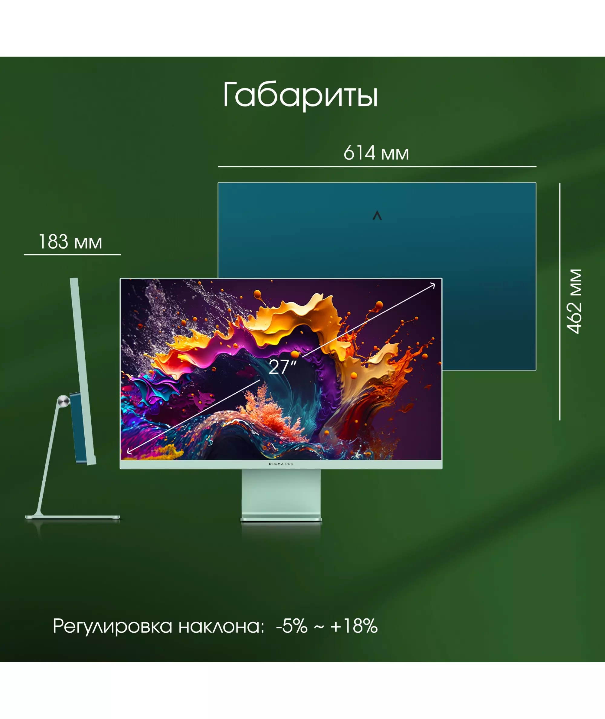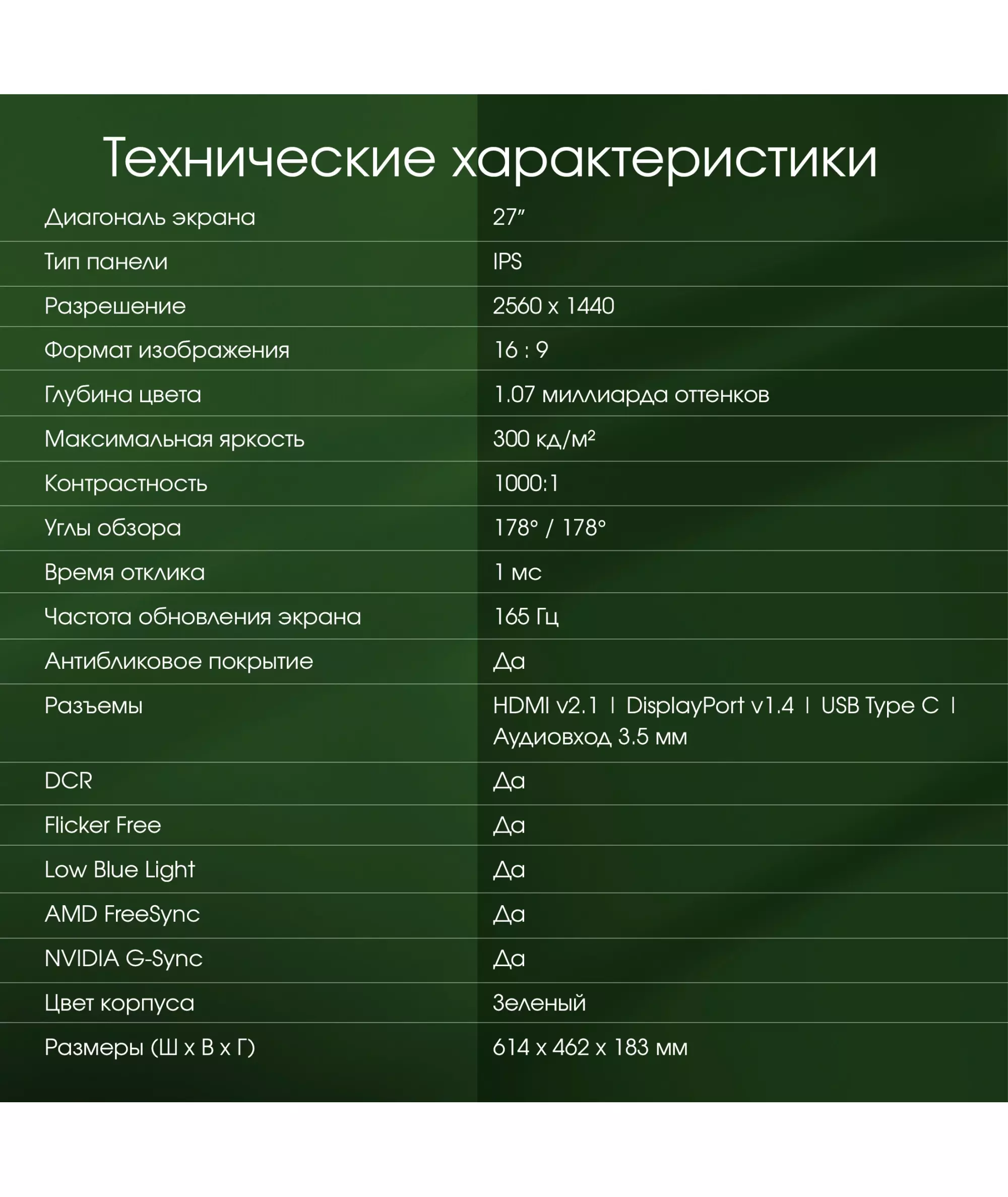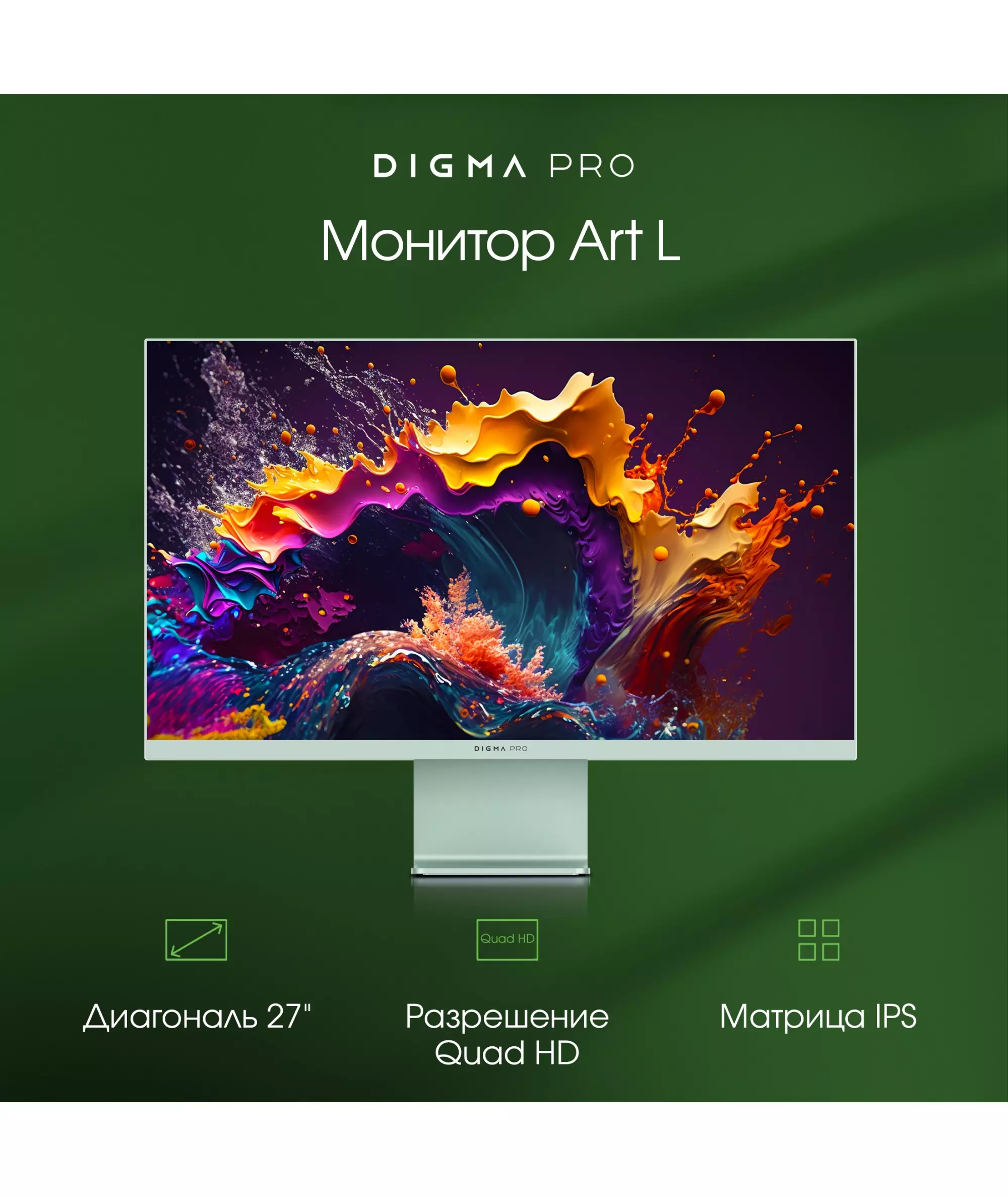 ЖК-монитор Digma Pro Art L 27" IPS LED 2ms 16:9 HDMI M/M матовая 300cd 178гр/178гр 2560x1440 165Hz G-Sync FreeSync DP 2K USB 5.7кг зеленый [DM27SP03]