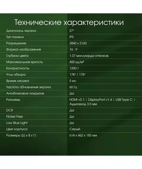 | Комплектация | DP кабель, USB-C кабель |