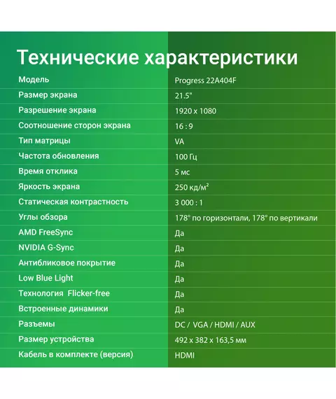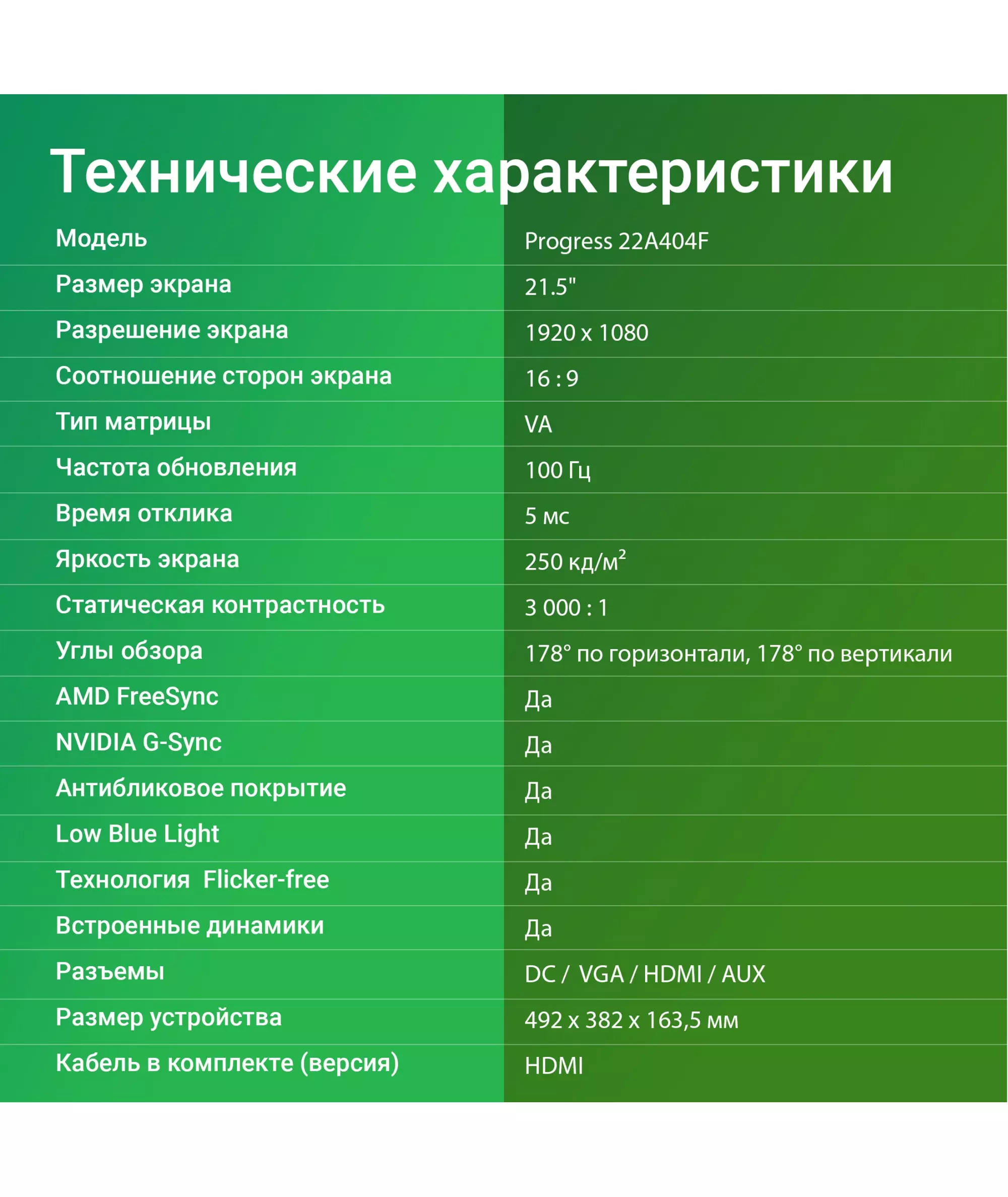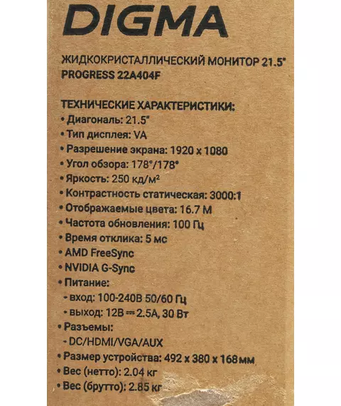 ЖК-монитор Digma Progress 22A404F 21.5" VA LED 5ms 16:9 HDMI M/M матовая 250cd 178гр/178гр 1920x1080 100Hz G-Sync VGA FHD 2.2кг черный [DM22VB03]