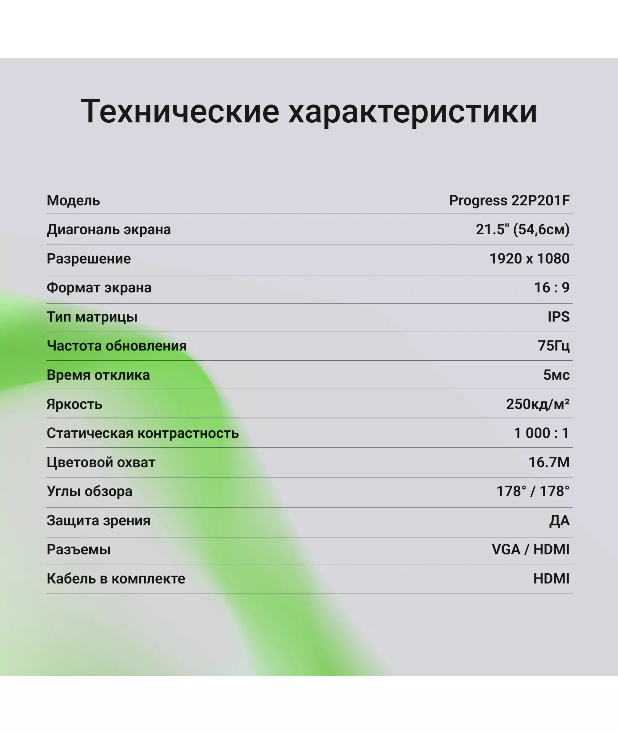 Монитор Digma Progress 22P201F 21.5" черный IPS LED 16:9 HDMI матовая 250cd 178гр/178гр 1920x1080 75Hz VGA FHD 2.65кг [DM22SB02]