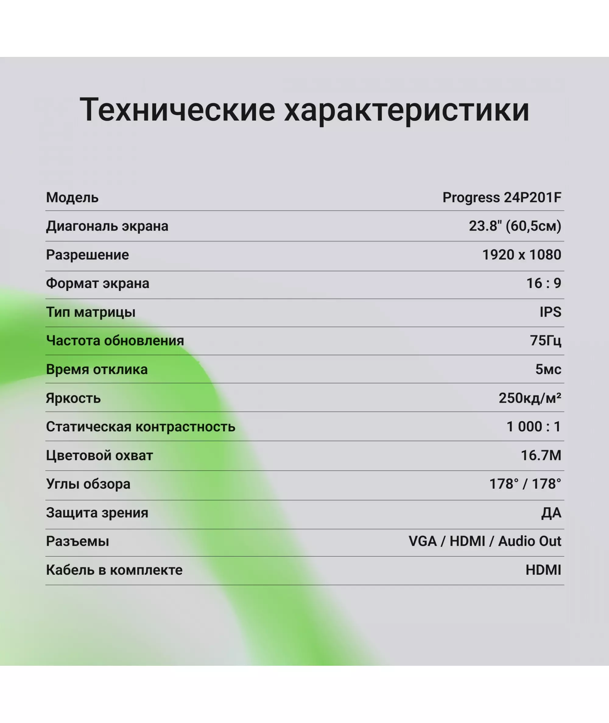 | Диагональ экрана | 23.8" (60.45см) |