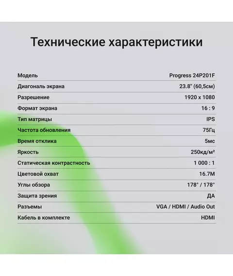 Монитор Digma Progress 24P201F 23.8" IPS LED 16:9 HDMI матовая 250cd 178гр/178гр 1920x1080 75Hz VGA FHD 2.95кг черный [DM24SB10]