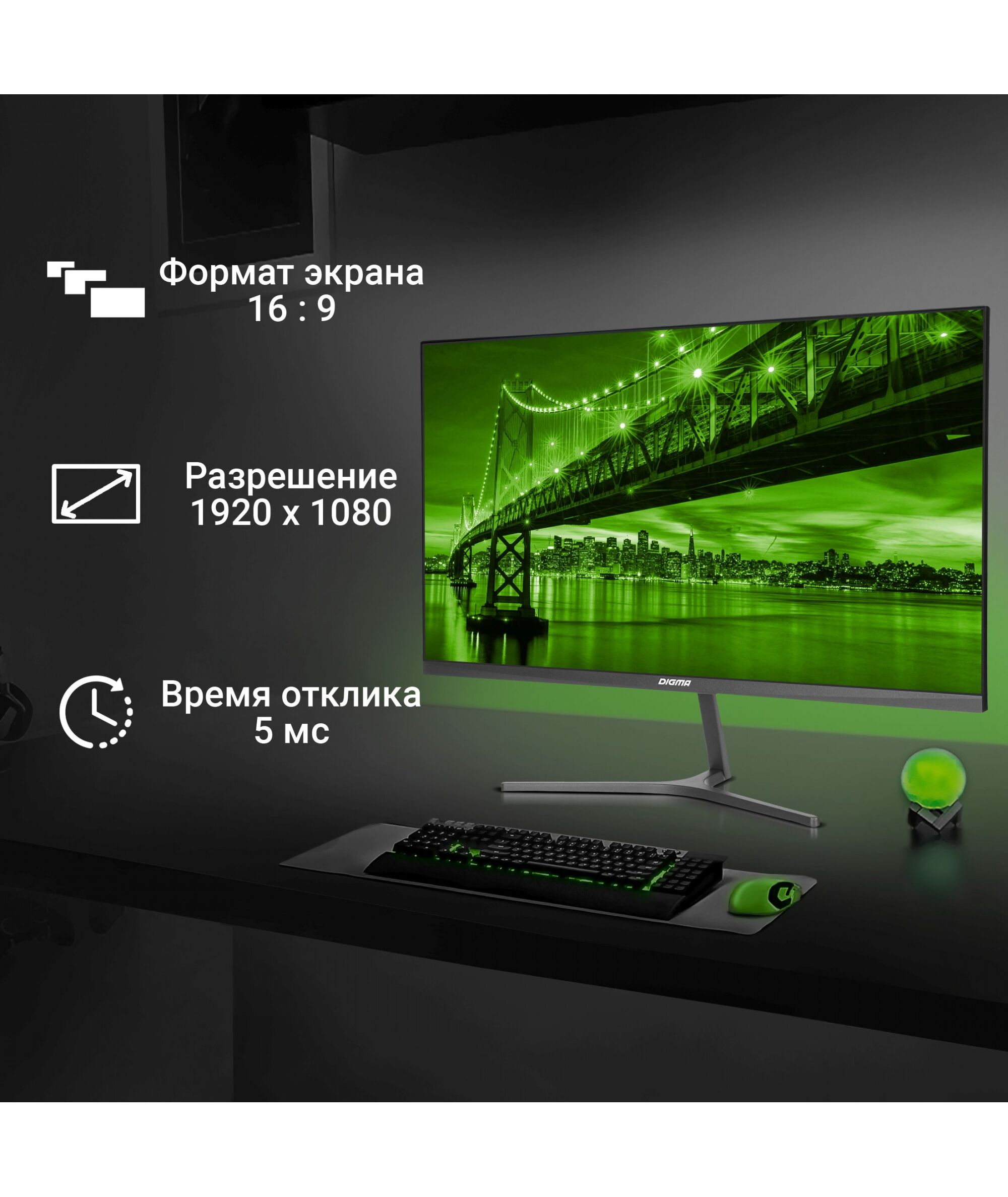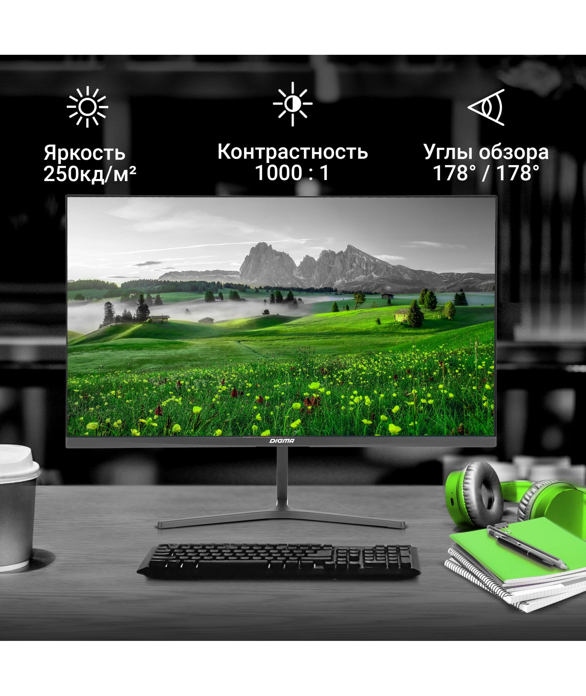 ЖК-монитор Digma Progress 24P503F 23.8" IPS LED 5ms 16:9 HDMI M/M матовая 250cd 178гр/178гр 1920x1080 100Hz VGA DP FHD 2.7кг темно-серый [DM24SB04]