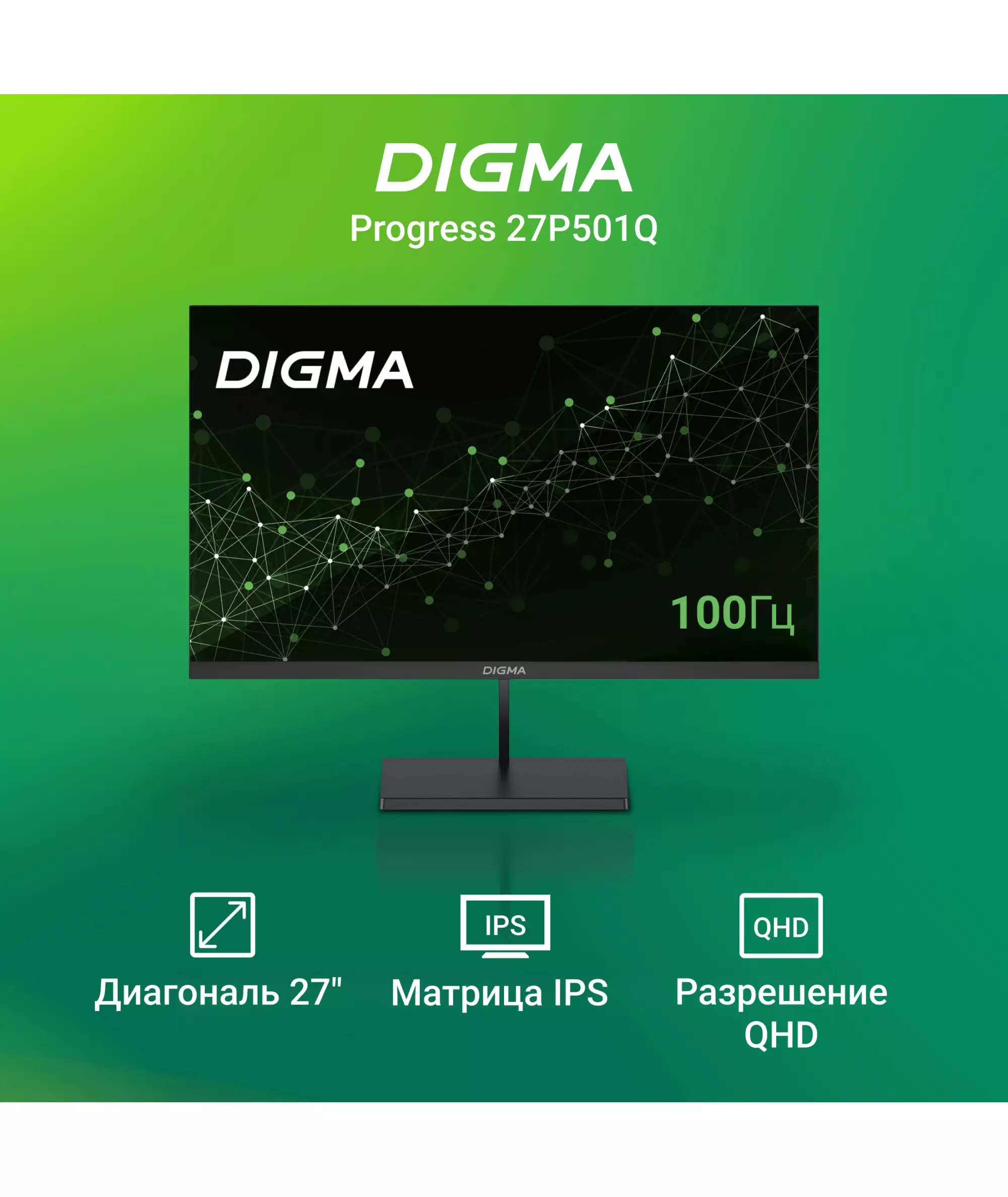 ЖК-монитор Digma Progress 27P501Q 27" IPS LED 5ms 16:9 HDMI M/M матовая 300cd 178гр/178гр 2560x1440 100Hz G-Sync FreeSync DP 2K 4.3кг черный [DM27SB05]