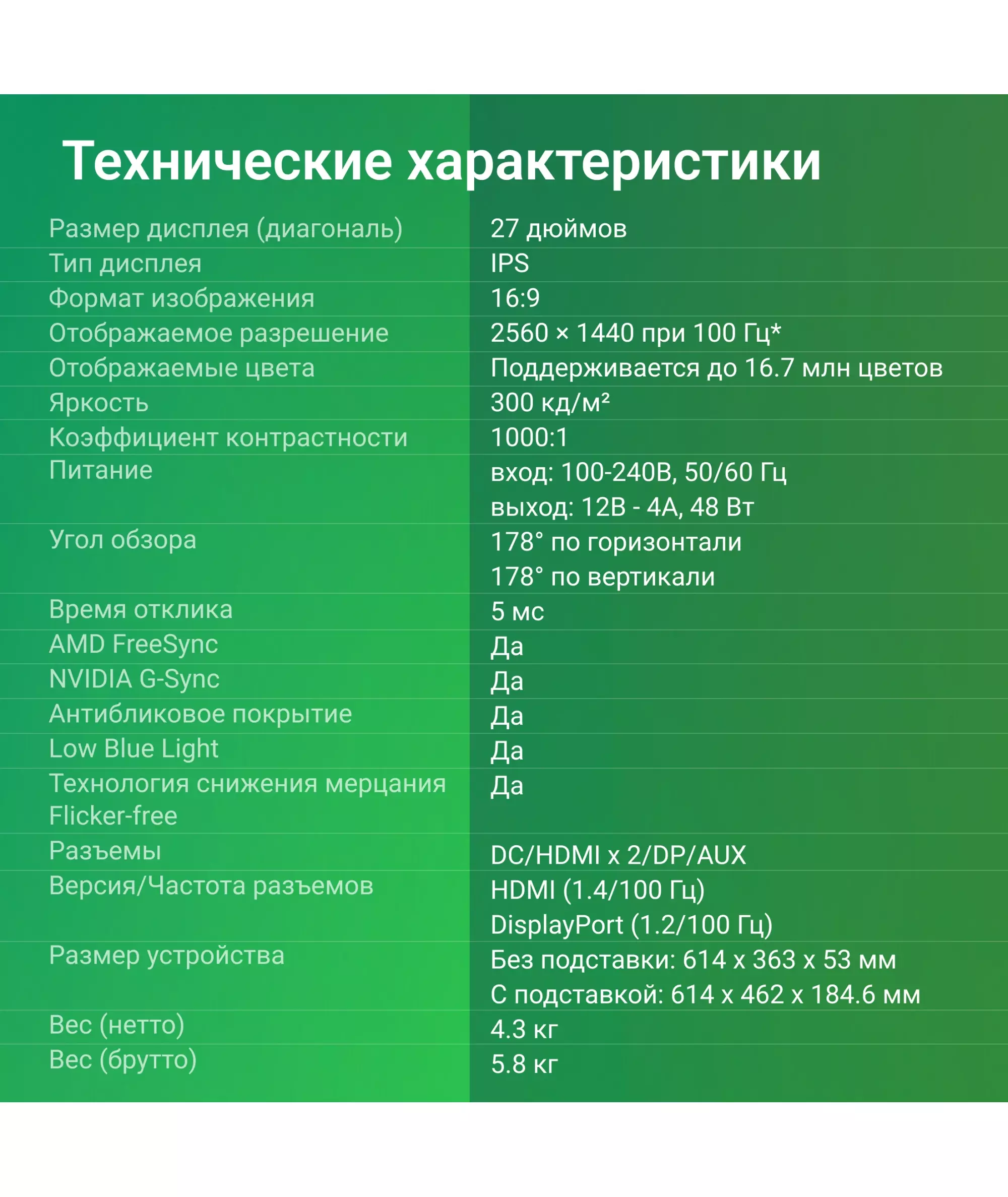 | Особенности монитора | трехсторонний безрамочный дизайн, ультратонкий |