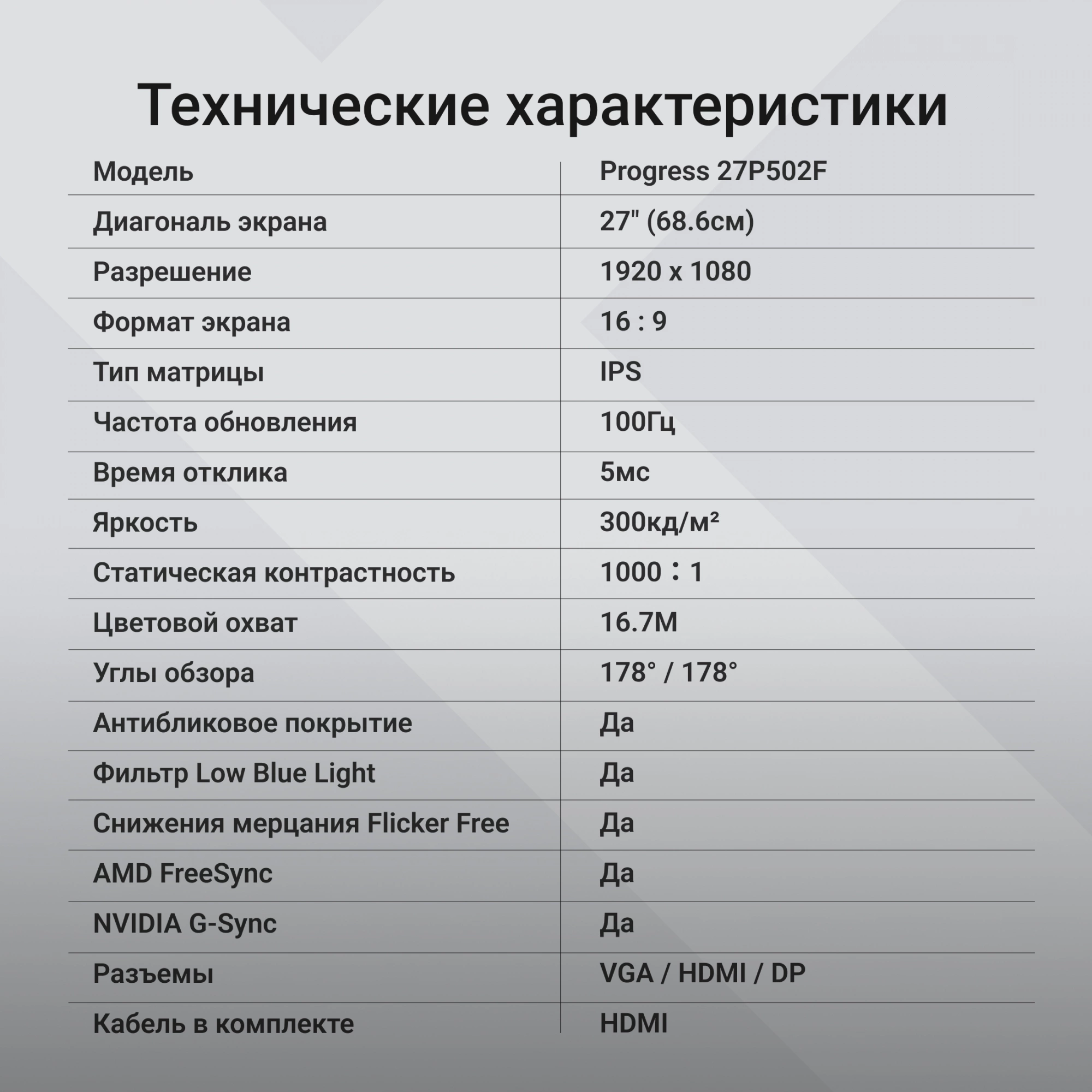 | Поддержка AMD FreeSync | Да |