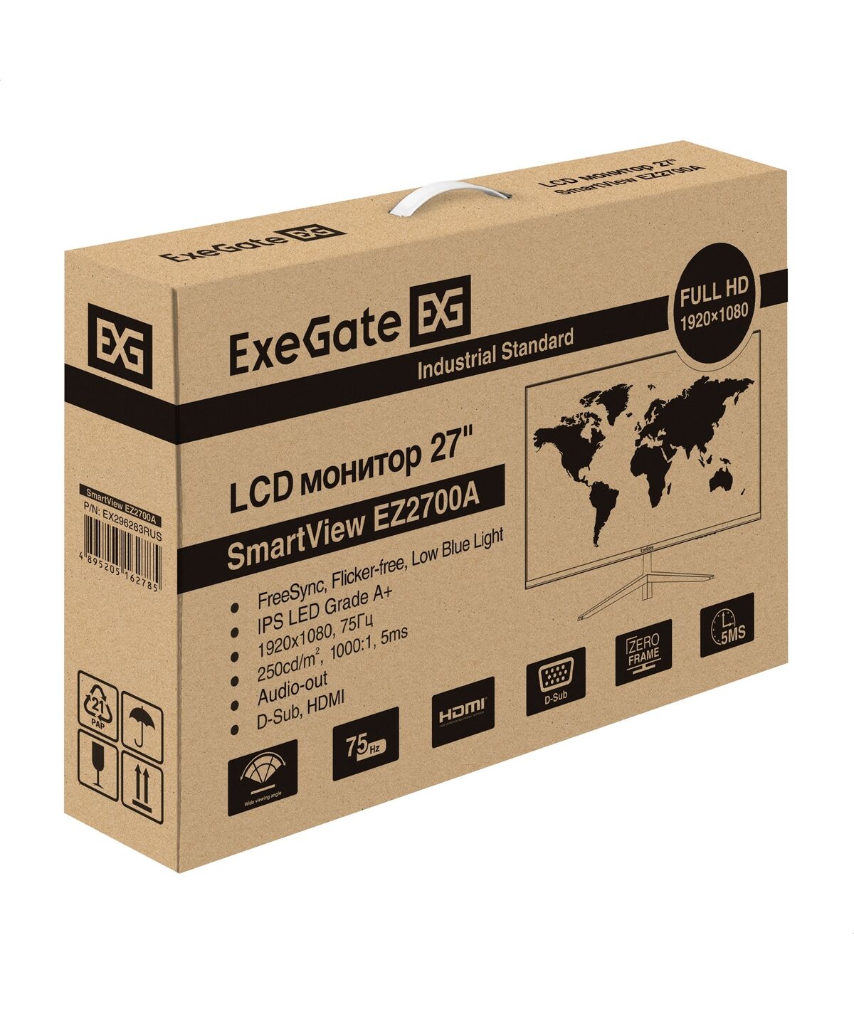 Монитор безрамочный Exegate SmartView EZ2700A 27" IPS LED, FHD, 1920x1080@75Гц, 16:9, 250cd/m2, 1000:1, 178°/178°, 5ms, D-Sub, HDMI1.4, Audio-out [EX296283RUS]