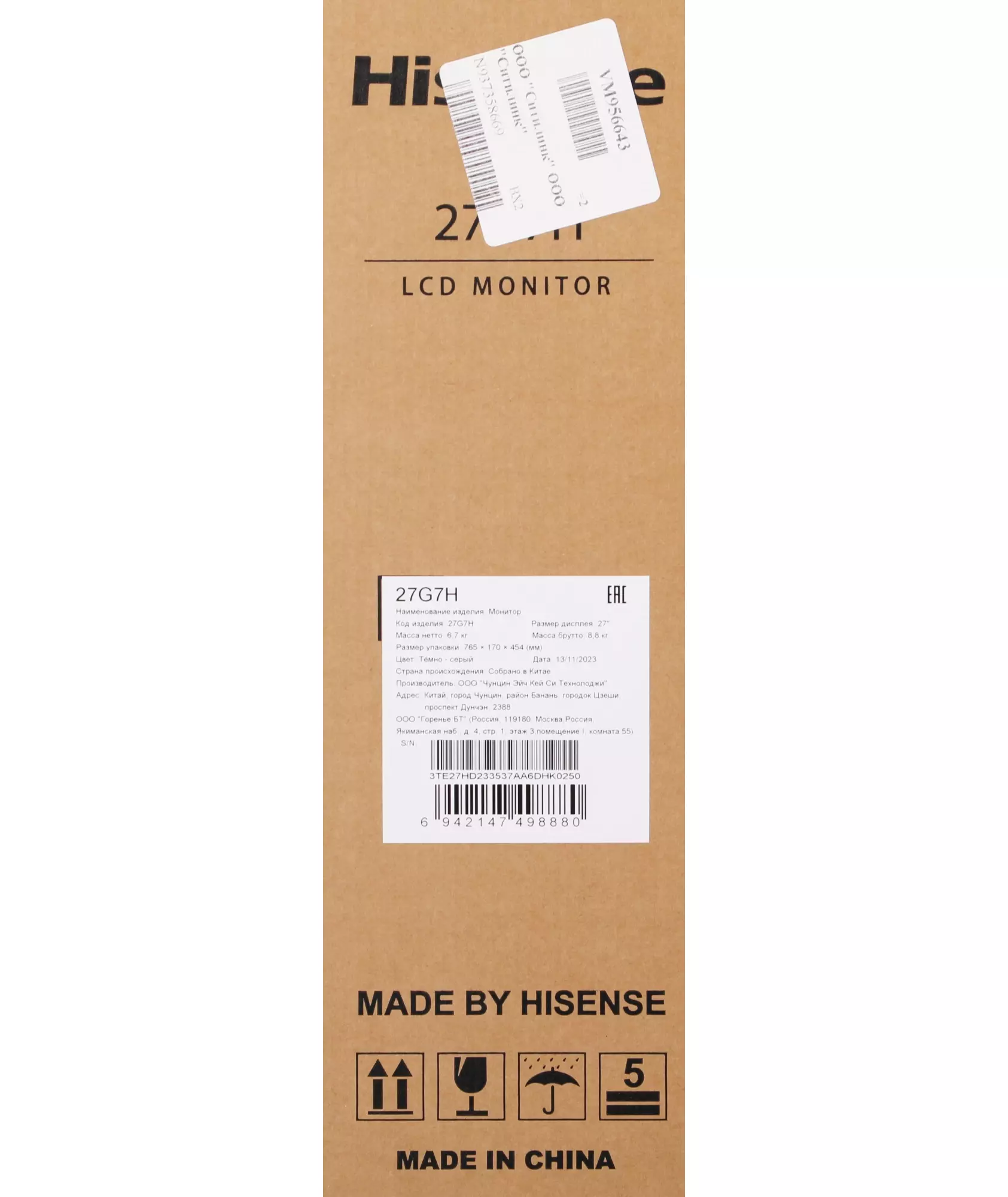 Монитор Hisense 27G7H 27", IPS, Mini-LED, LED, 16:9, 2560x1440, HDMI, темно-серый, 6.8кг