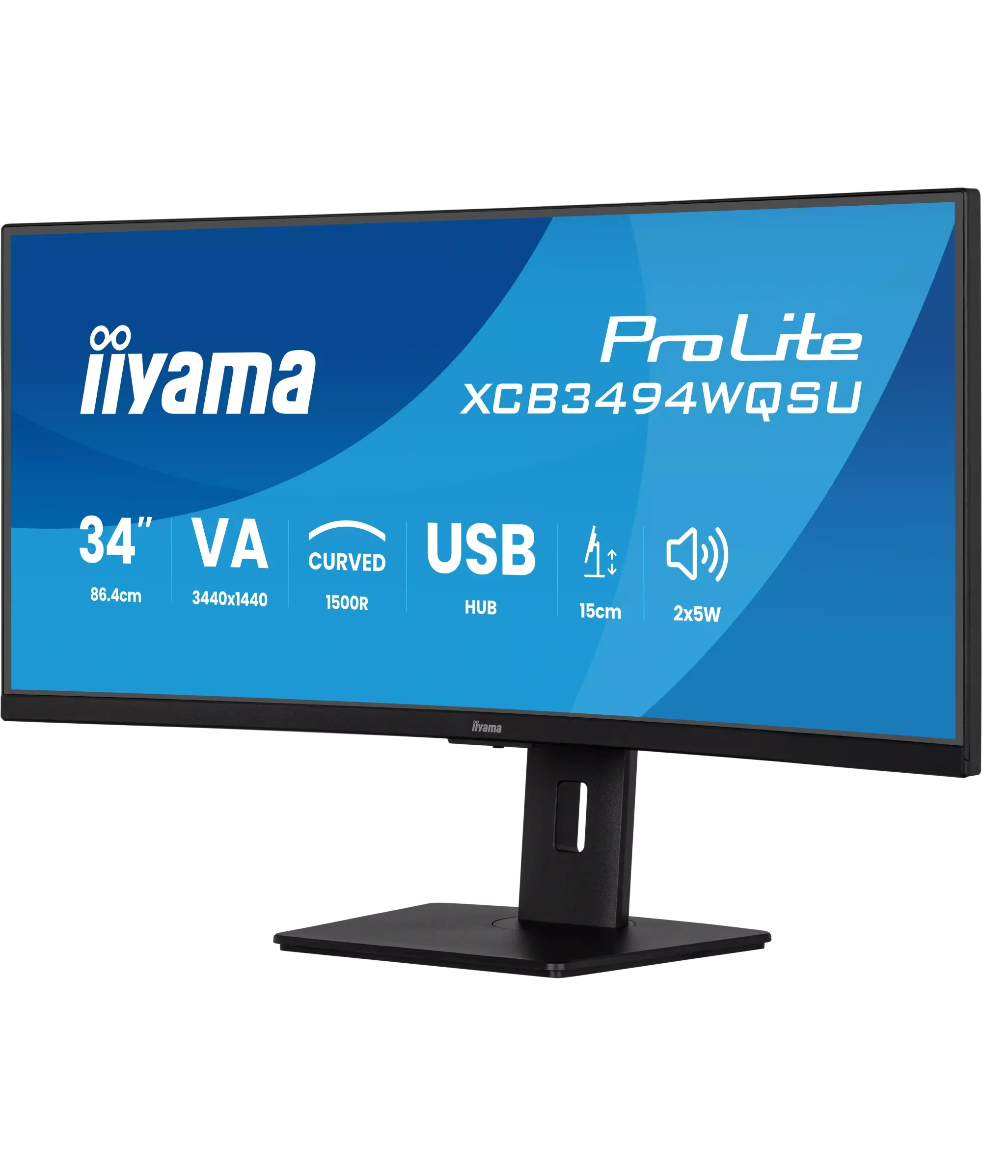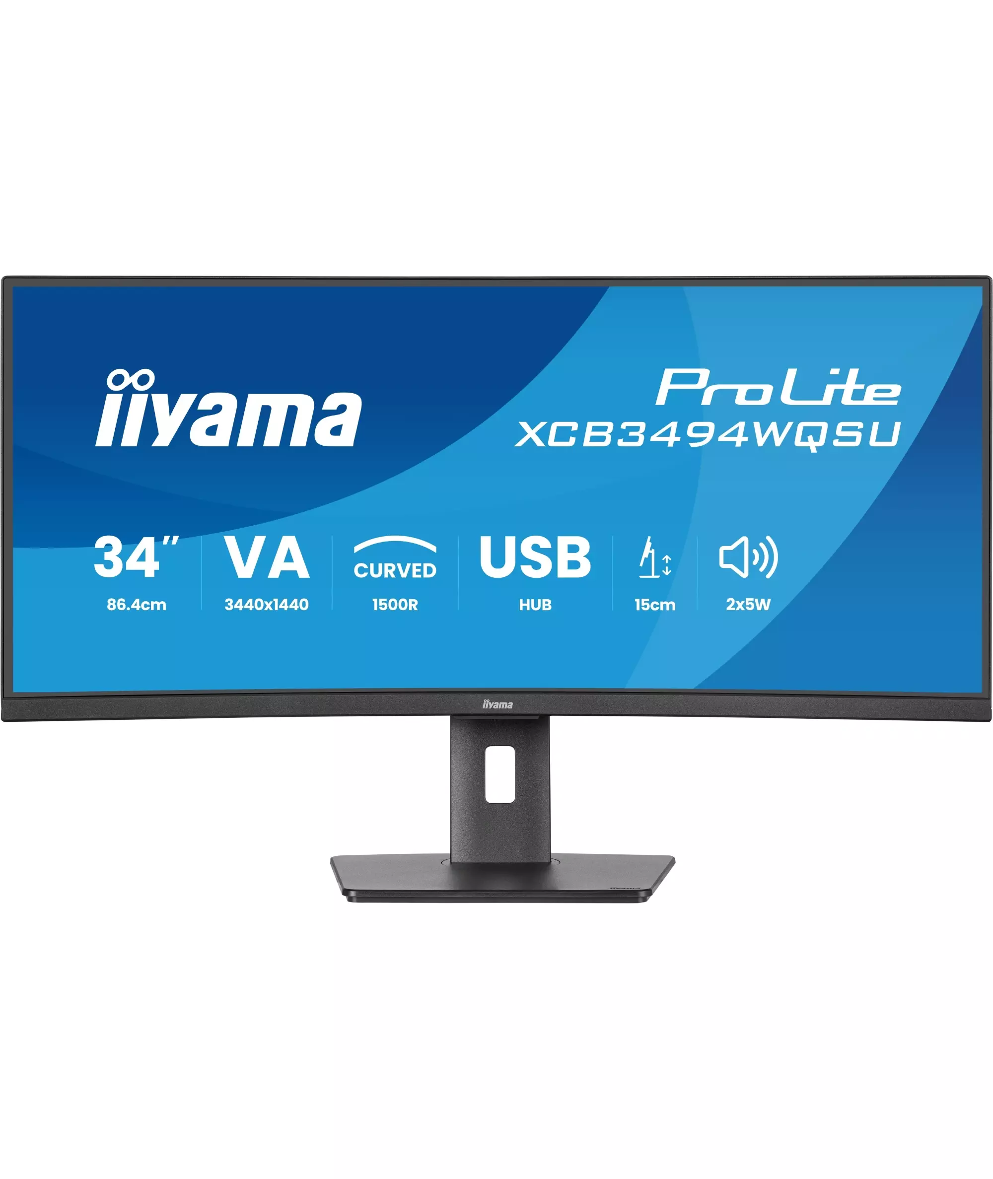 Монитор Iiyama XCB3497WQSNPH-B1 34" ProLite VA LED 21:9 HDMI M/M Cam матовая HAS Piv 3000:1 350cd 178гр/178гр 3440x1440 120Hz FreeSync Premium DP UW USB 9.7кг