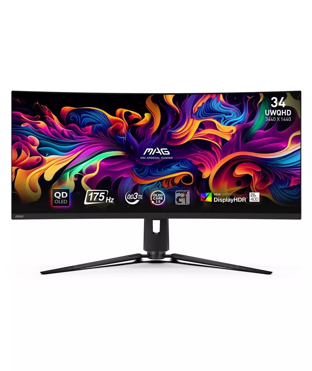 ЖК-монитор MSI MAG 341CQP 34" QD OLED LED 21:9 HDMI матовая HAS 250cd 178гр/178гр 3440x1440 175Hz FreeSync Premium Pro DP UW USB 9.3кг черный [9S6-3DD04T-010]