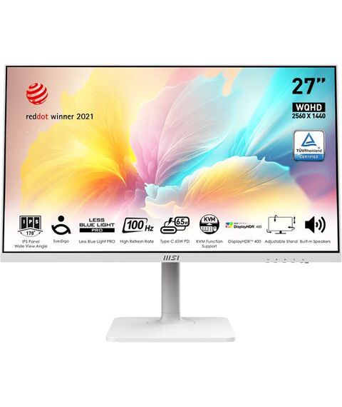 ЖК-монитор MSI Modern MD272QXPW 27" IPS LED 1ms 16:9 HDMI M/M матовая HAS Piv 400cd 178гр/178гр 2560x1440 100Hz DP Quad 2K (1440p) USB 5.85кг белый [9S6-3PB19H-225]
