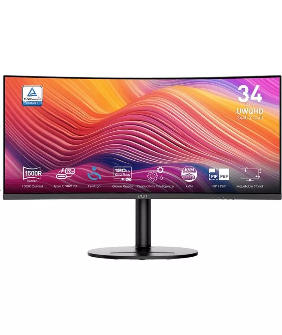 Монитор MSI Modern MD342CQP 34" VA LED 21:9 HDMI M/M матовая HAS Piv 3500:1 300cd 178гр/178гр 3440x1440 120Hz DP UW USB 8.05кг черный [9S6-3PC59H-031]