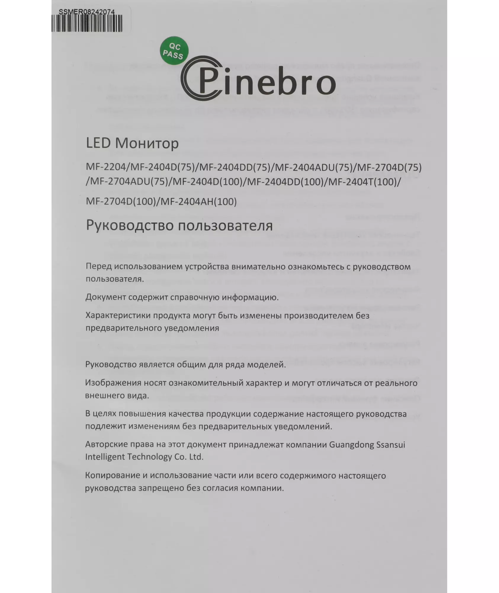 Монитор Pinebro MF-2704D 27" IPS LED 5ms 16:9 HDMI M/M матовая 250cd 178гр/178гр 1920x1080 75Hz VGA DP FHD 3.7кг черный