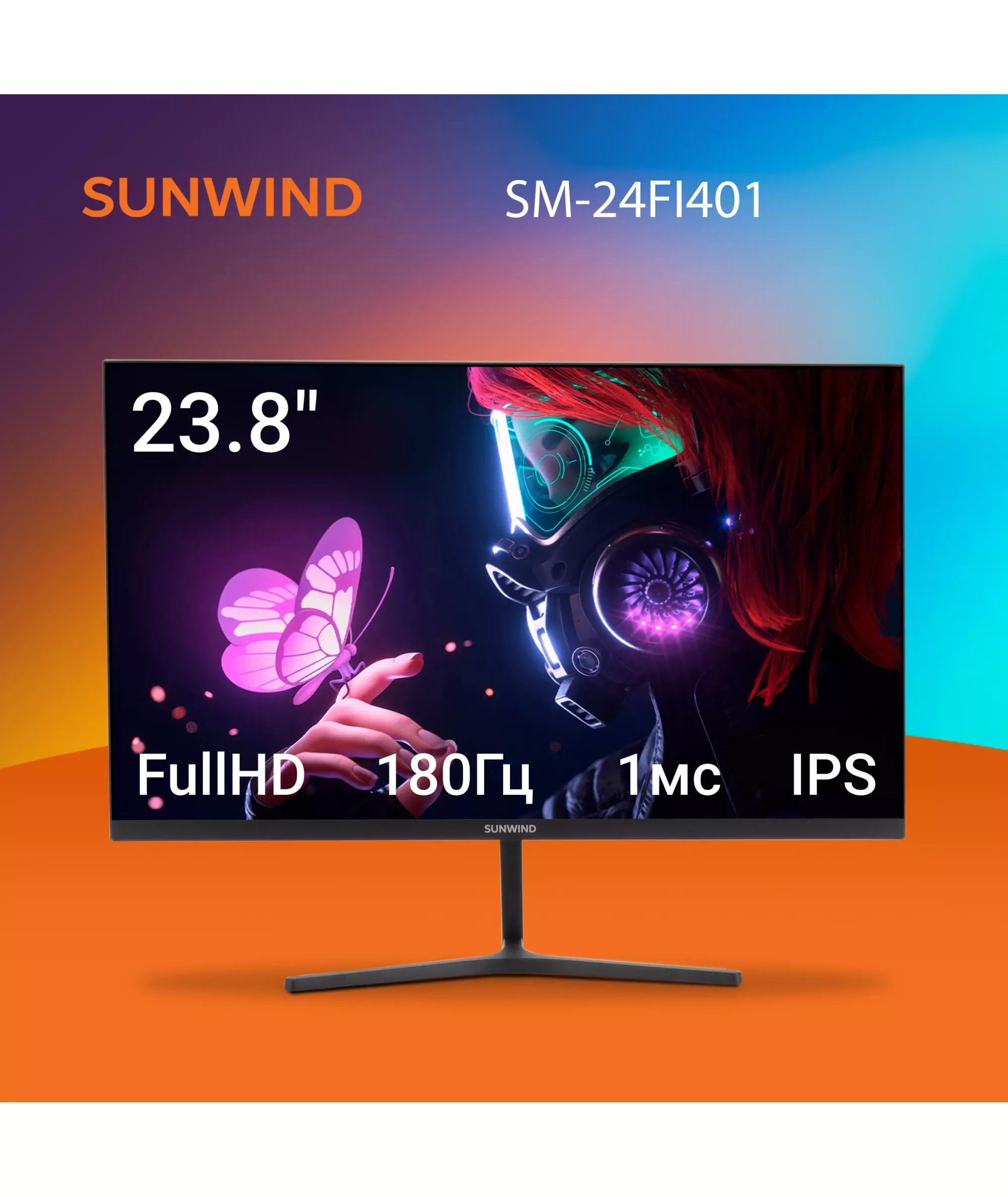 Монитор SunWind SM-24FI401 23.8" черный IPS LED 1ms 16:9 HDMI матовая 250cd 178гр/178гр 1920x1080 180Hz G-Sync FreeSync DP FHD 2.79кг [SM24SG01]