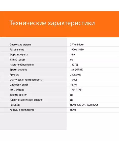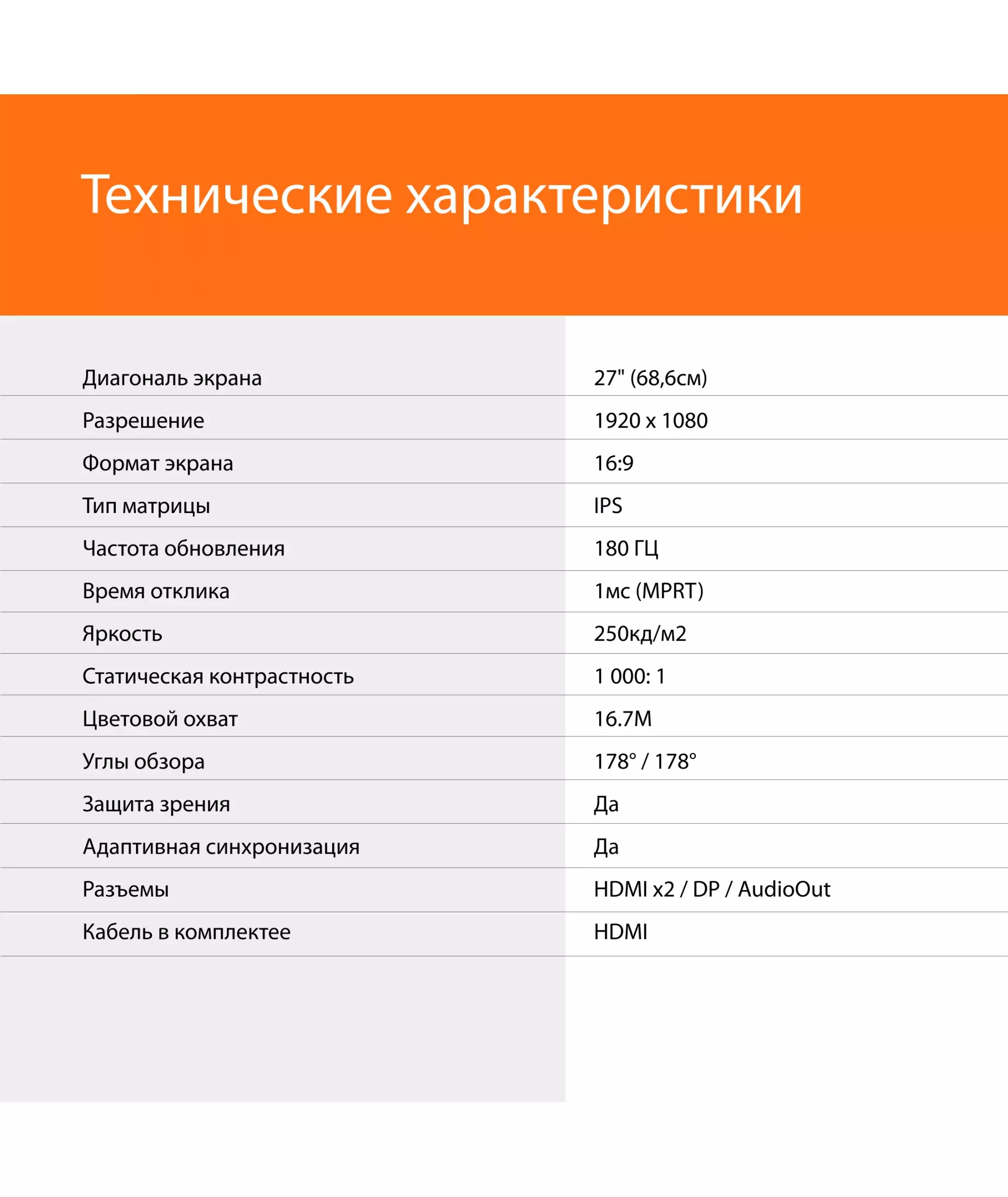 | Особенности монитора | трехсторонний безрамочный дизайн, ультратонкий |