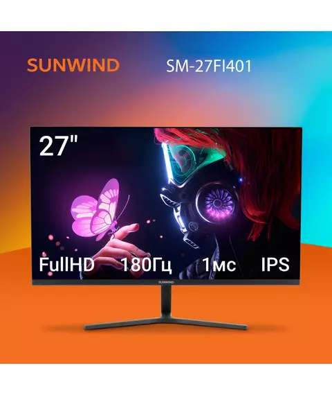 Монитор SunWind SM-27FI401 27" черный IPS LED 1ms 16:9 HDMI матовая 250cd 178гр/178гр 1920x1080 180Hz G-Sync FreeSync DP FHD 4.2кг [SM27SG01]