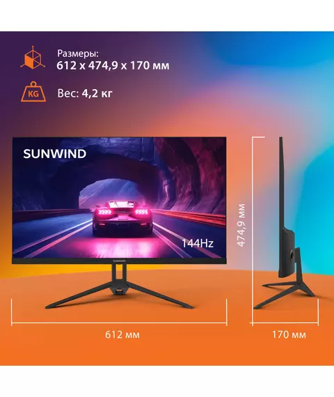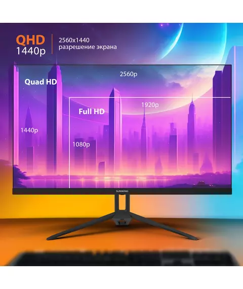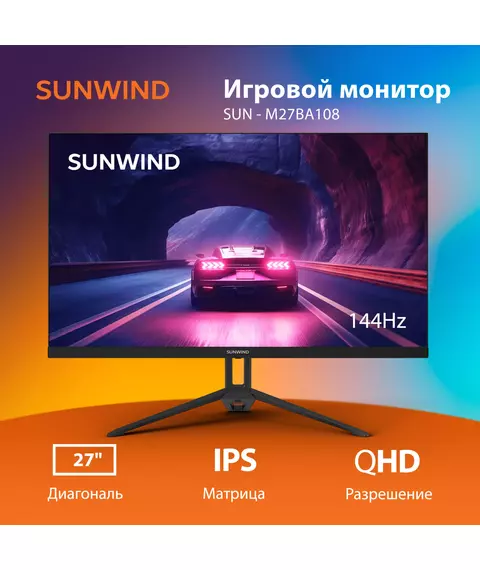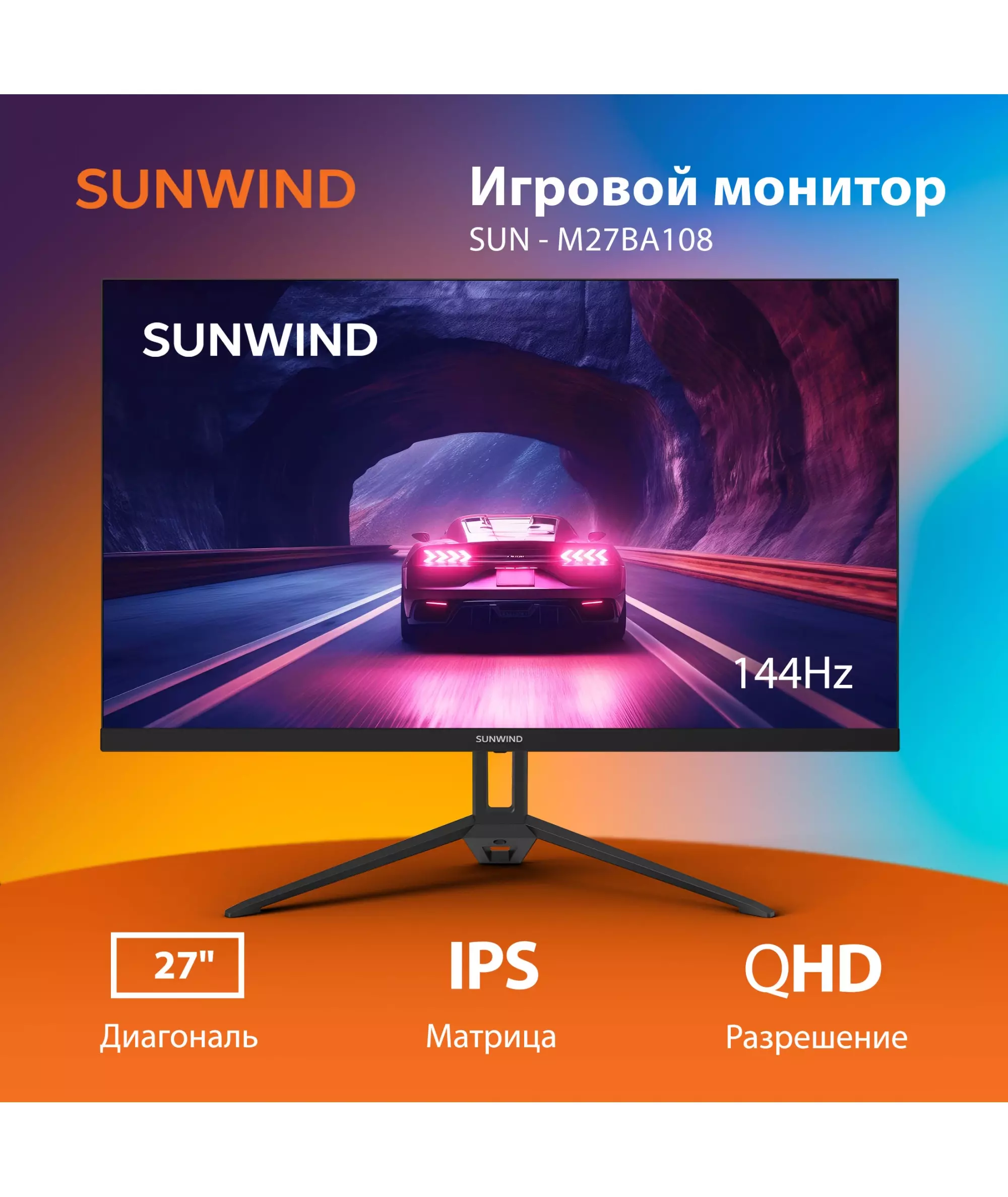 ЖК-монитор SunWind SUN-M27BA108 27" IPS 16:9 HDMI матовая 280cd 178гр/178гр 2560x1440 144Hz G-Sync DP FHD 4.2кг черный