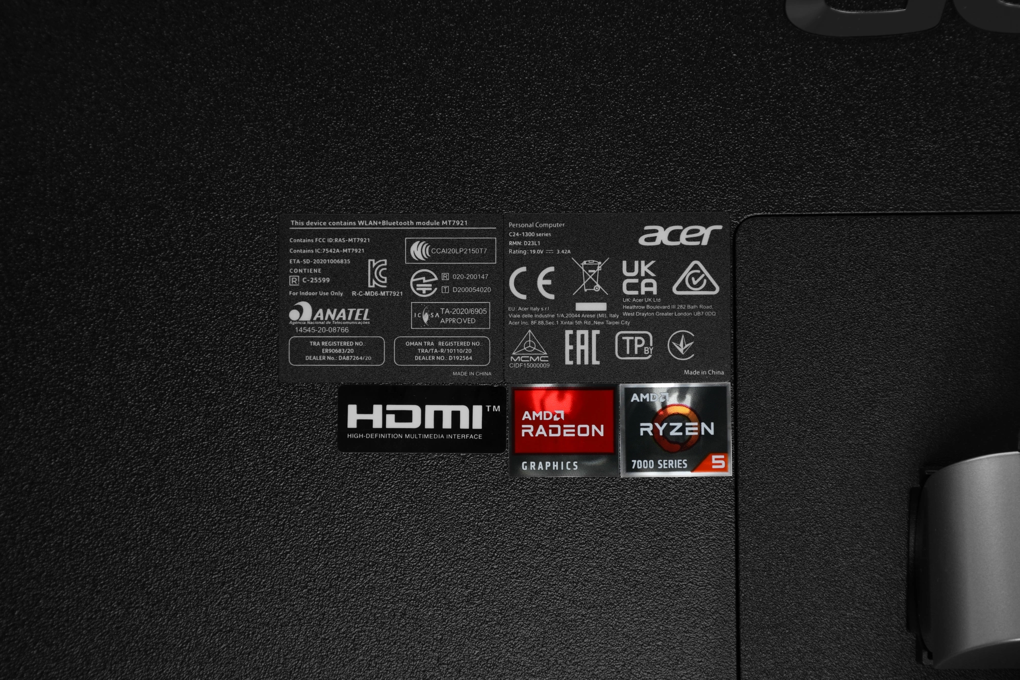 Моноблок Acer Aspire C24-1300 23.8" Full HD Ryzen 5 7520U (2.8) 16Gb SSD512Gb RGr CR Eshell GbitEth WiFi BT 65W клавиатура мышь Cam черный 1920x1080 [DQ.BL0CD.005]