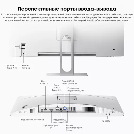 | Комплектация | Кабель питания, клавиатура, мышь, адаптер питания, руководство пользователя |