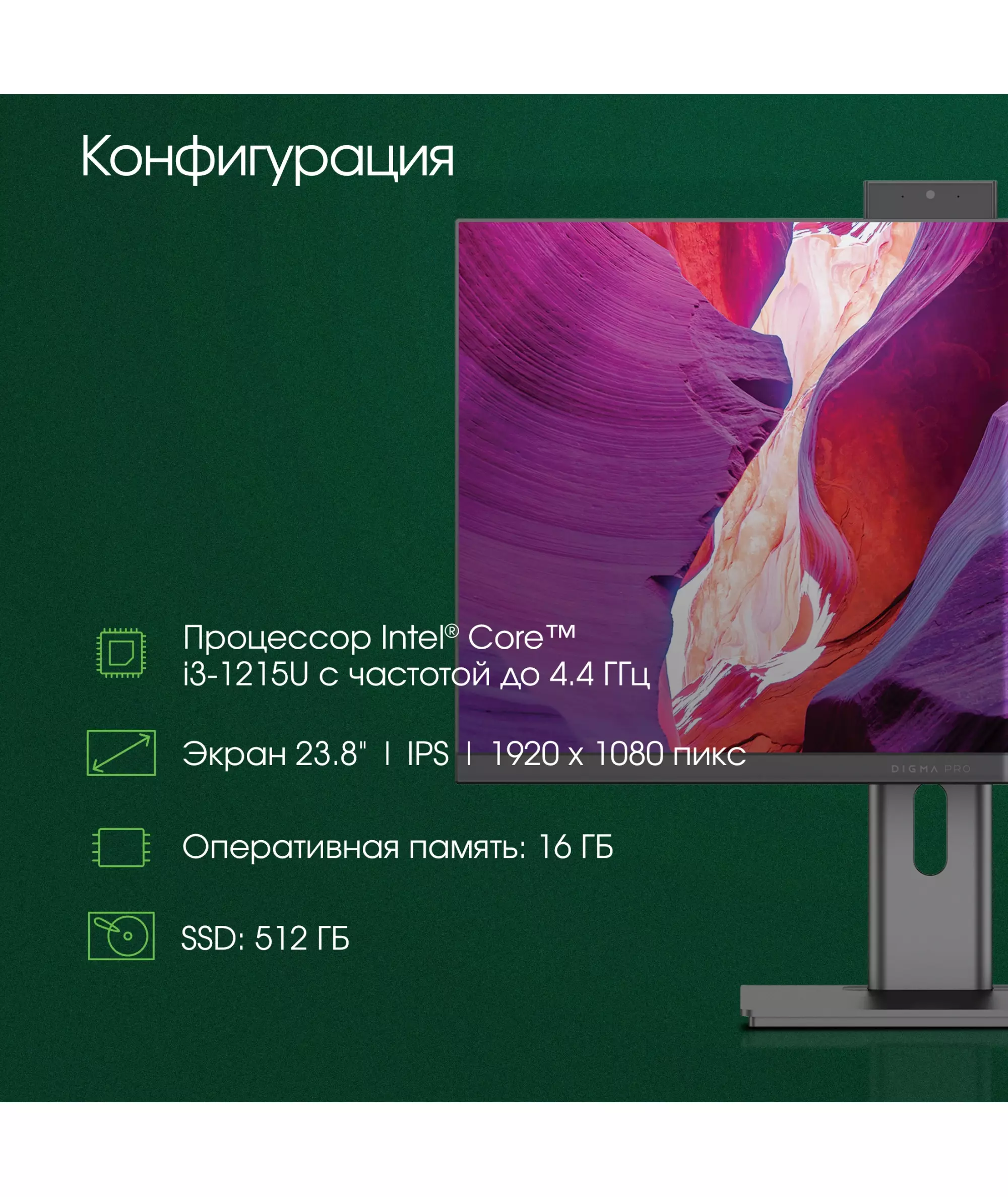 Моноблок Digma Pro Unity i3 1215U (1.2) 16Gb SSD512Gb UHDG CR Windows 11 Pro GbitEth WiFi BT 90W клавиатура мышь Cam серый/черный 23.8" Full HD 1920x1080 [DM23P3-ADXW02]