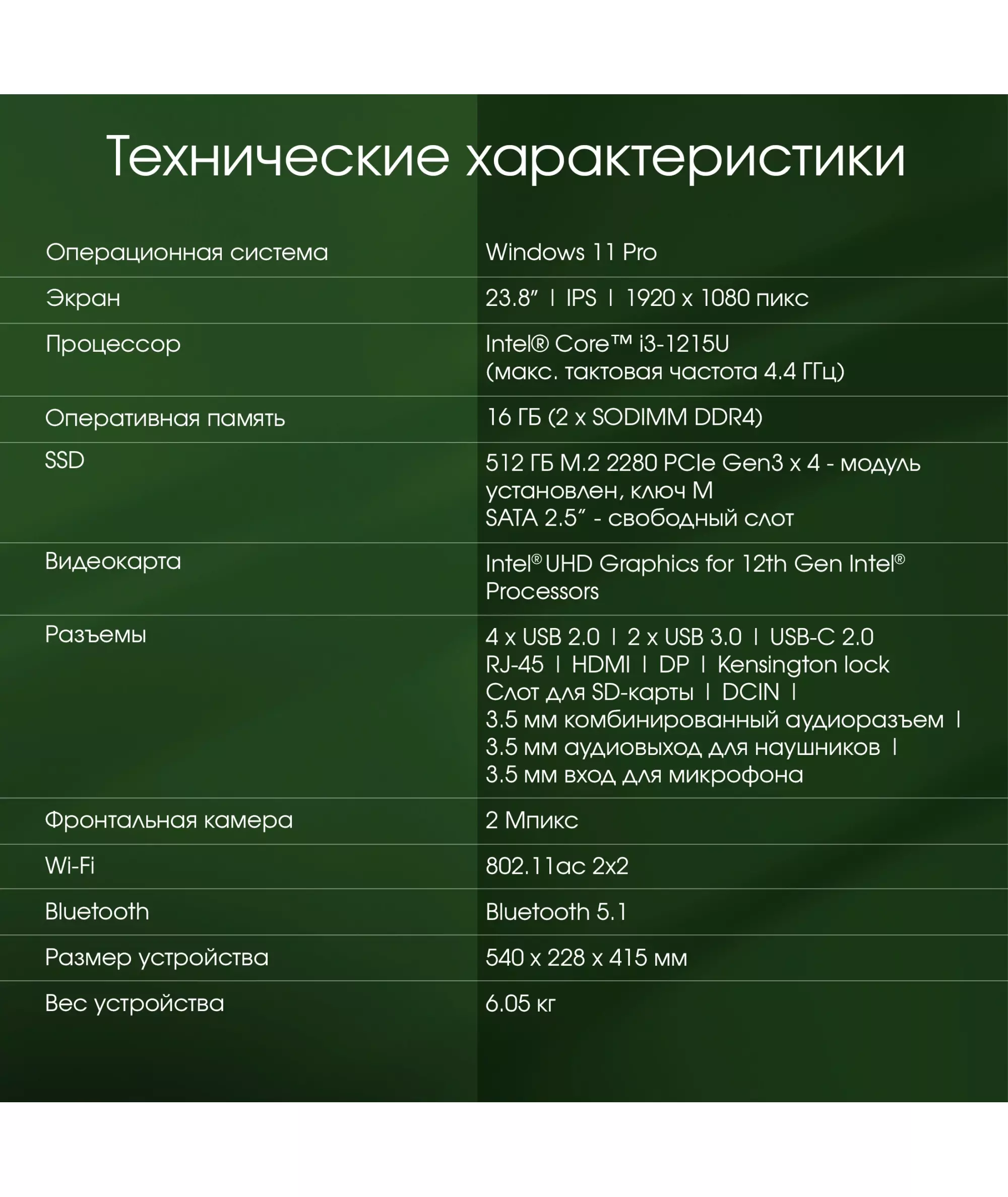 | Комплектация | Моноблок Unity; сетевой адаптер питания; беспроводная клавиатура; беспроводная мышь; руководство пользователя; гарантийный талон |