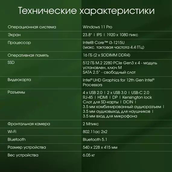 | Процессор | Intel Core i3 1215U 1.2ГГц |