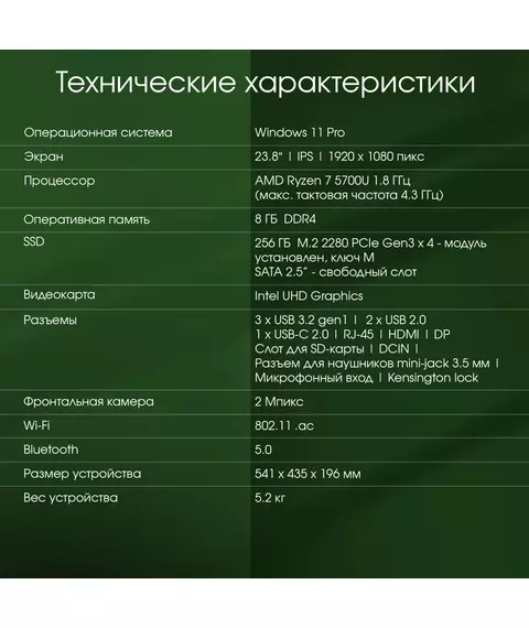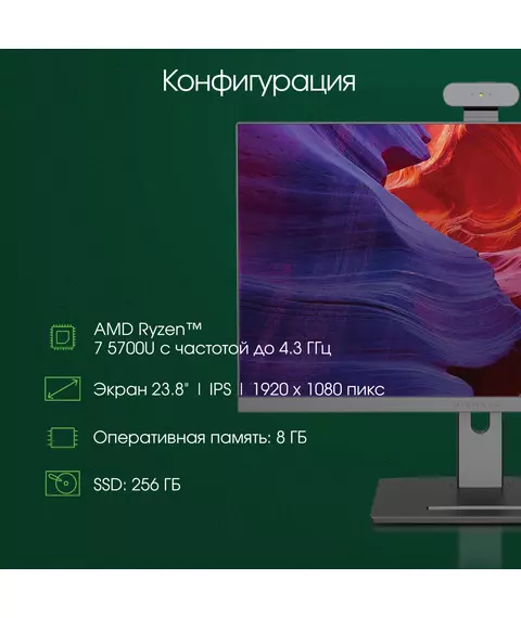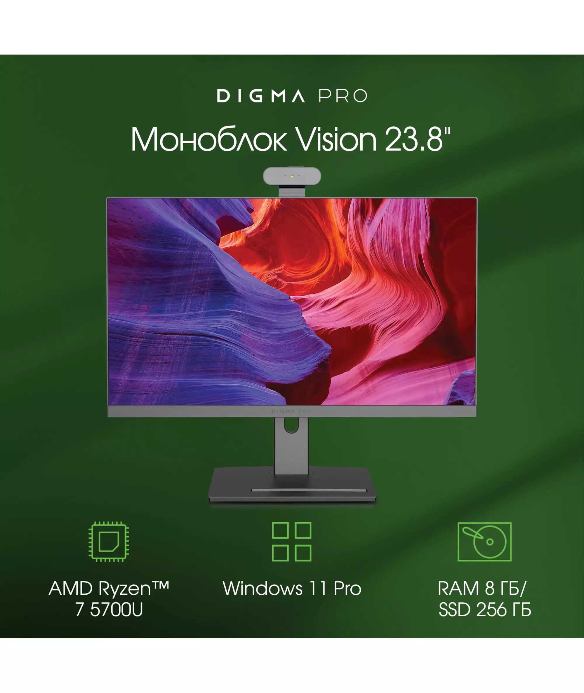 Моноблок Digma Pro Vision Ryzen 7 5700U (1.8) 8Gb SSD256Gb RGr CR Windows 11 Pro Eth WiFi BT 23.8" Full HD 1920x1080 90W клавиатура мышь Cam черный [DM23R7-8CXW01]