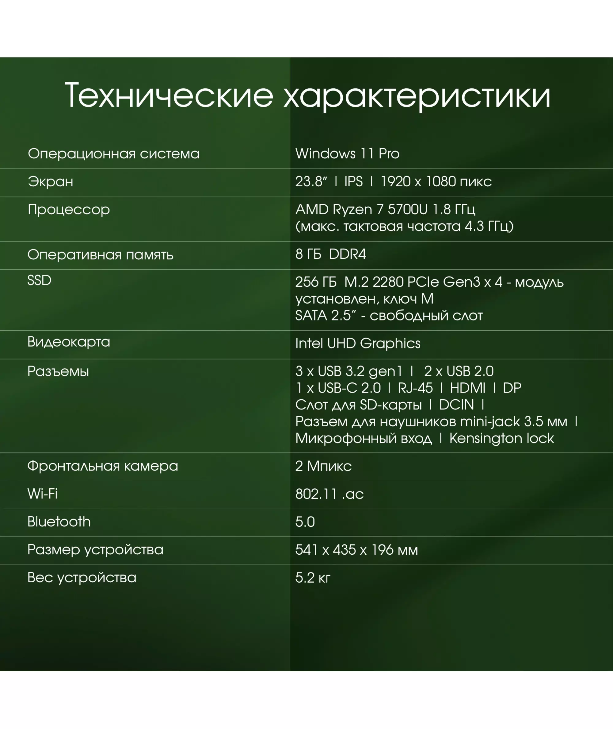 | Процессор | AMD Ryzen 7 5700U 1.8ГГц |
