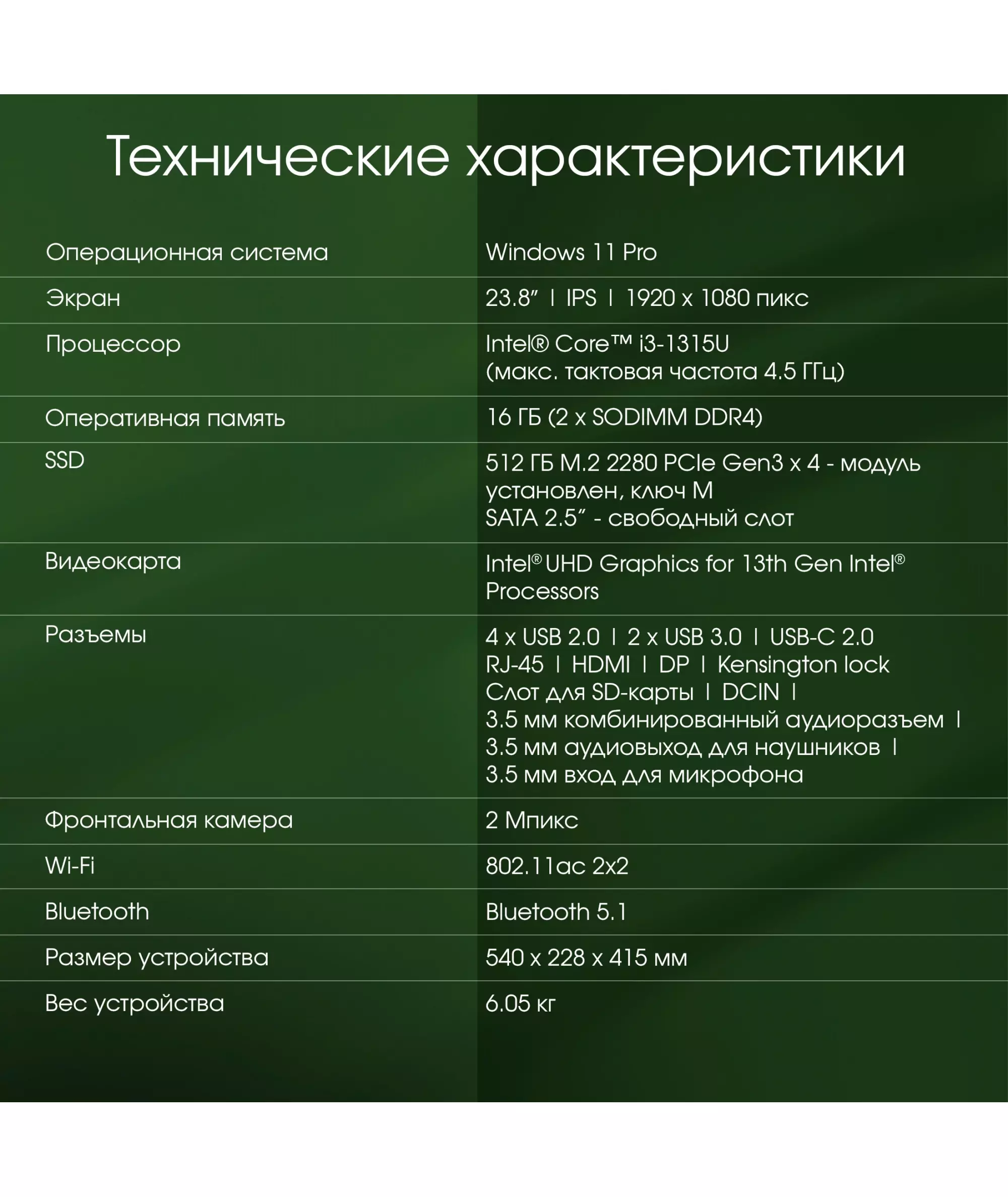 | Комплектация | Моноблок Unity; сетевой адаптер питания; беспроводная клавиатура; беспроводная мышь; руководство пользователя; гарантийный талон |