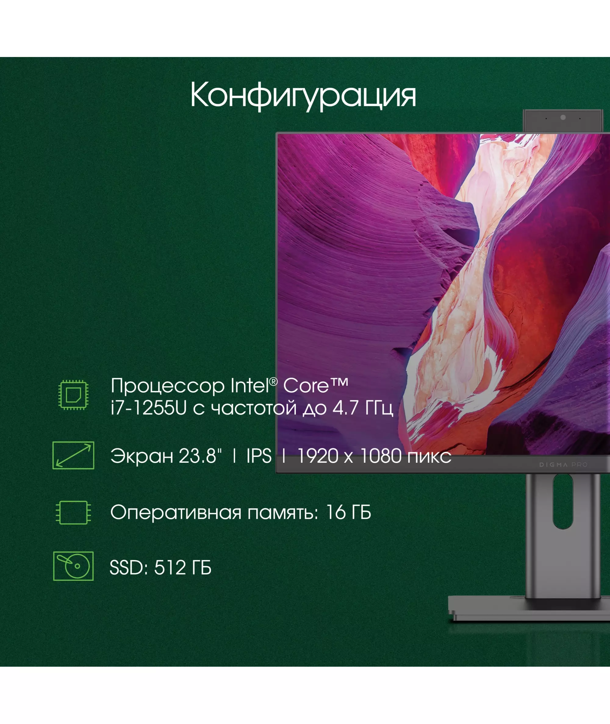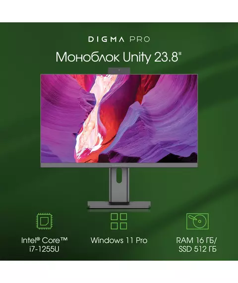 Моноблок Digma Pro Unity 23.8" Full HD i7 1255U (1.7) 16Gb SSD512Gb Iris Xe Windows 11 Professional GbitEth WiFi BT 90W клавиатура мышь Cam серый [DM23P7-ADXW02]