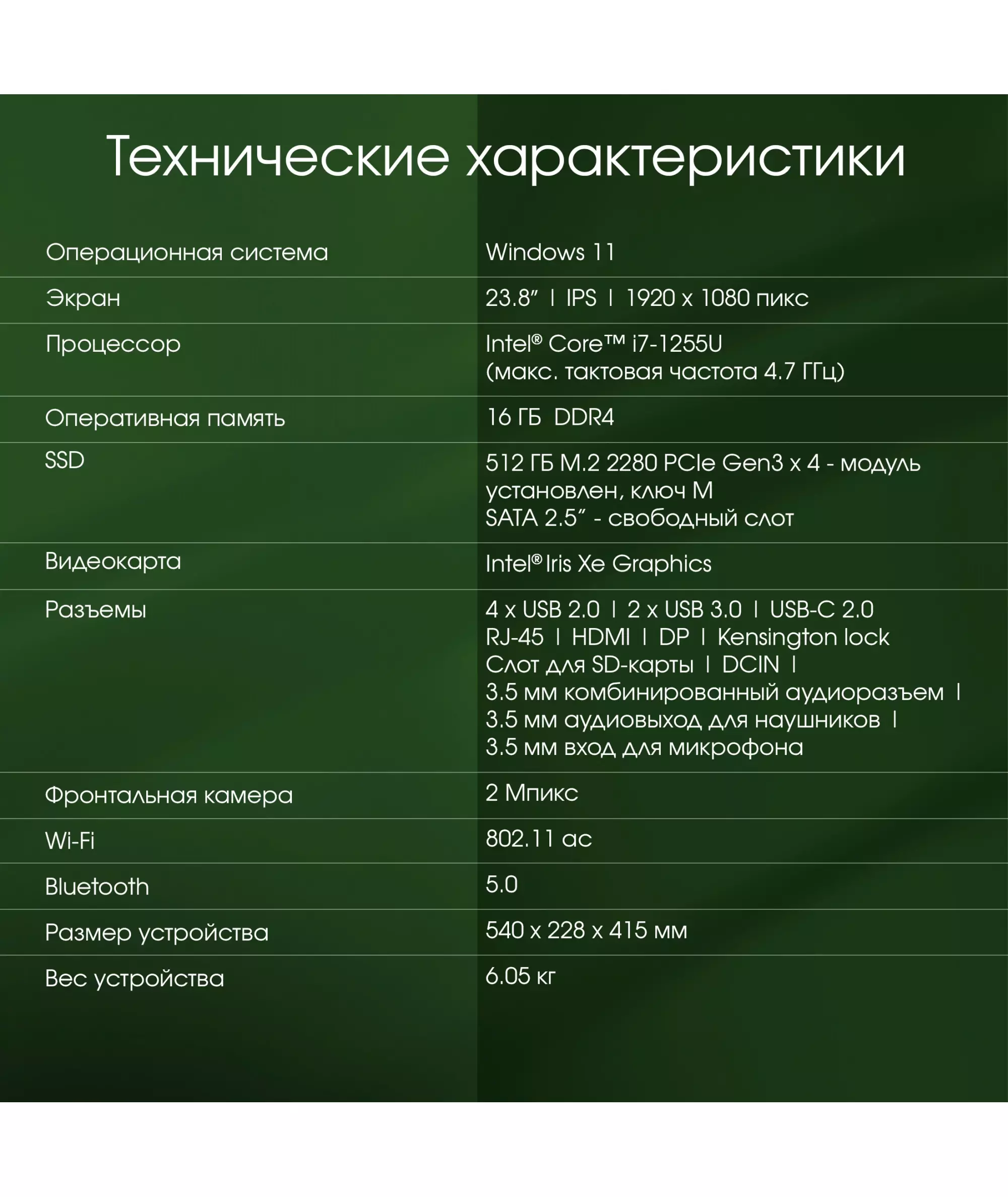 | Размеры корпуса | 540x415x45мм |