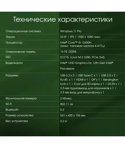 Моноблок Digma Pro Vision 23.8" Full HD i5 12450H (2) 16Gb SSD512Gb UHDG CR Windows 11 Pro Eth WiFi BT 90W клавиатура мышь Cam черный 1920x1080 [DM23P5-ADXW01]