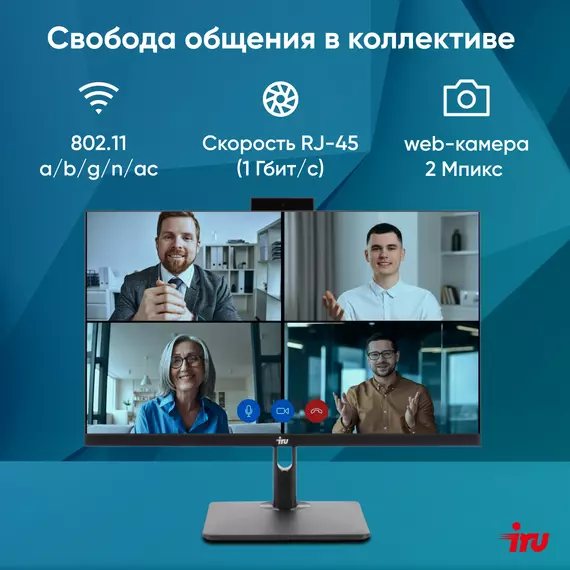 Моноблок iRU 23ID i5 12400 (2.5) 16Gb SSD512Gb UHDG 730 CR noOS GbitEth WiFi BT 23.8" Full HD 1920x1080 90W Cam черный [1994781]