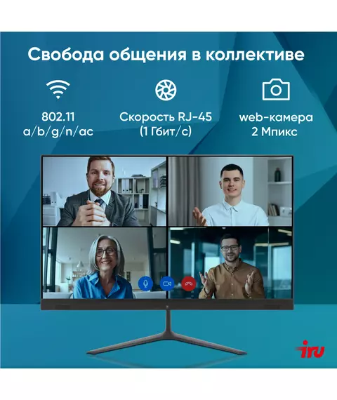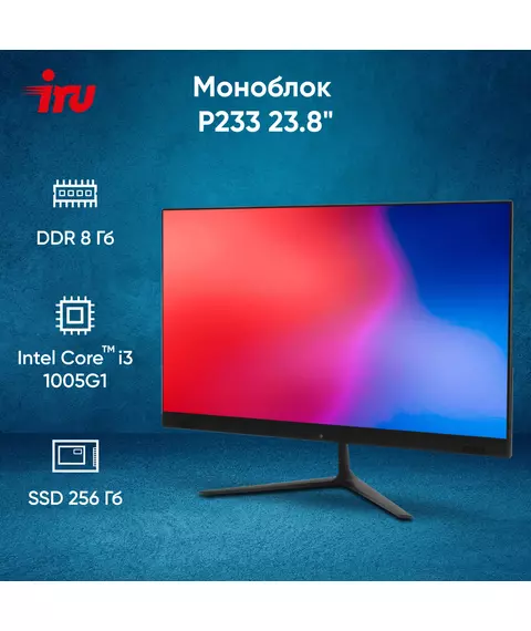 Моноблок iRU P233 23.8" Full HD i3 1005G1 (1.2) 8Gb SSD256Gb CR noOS GbitEth WiFi BT 120W Cam черный [1971915]