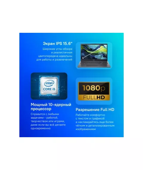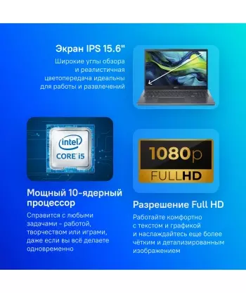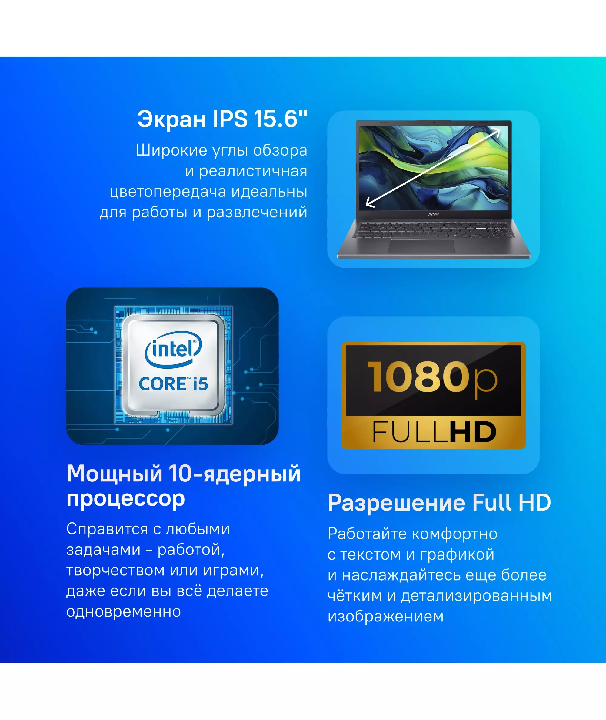 Ноутбук Acer Aspire 15 A15-51M-59MC Core 5 120U 16Gb SSD1Tb Intel Graphics 15.6" IPS FHD (1920x1080) без ОС metall WiFi BT Cam [NX.KXSCD.005]