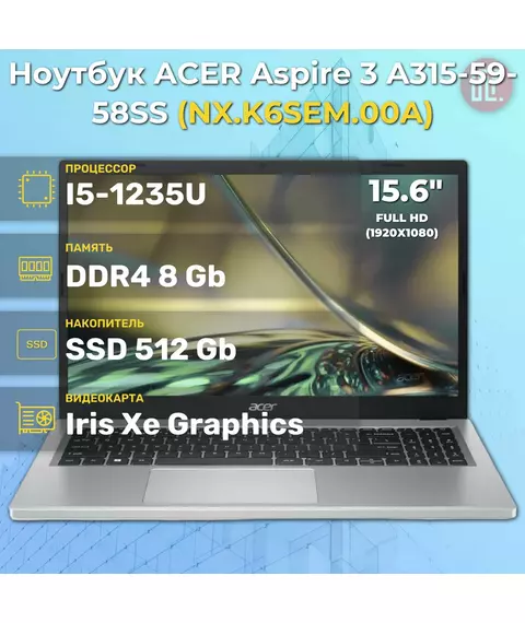 Ноутбук Acer Aspire 3 A315-59-58SS i5 1235U/8/512SSD/WiFi/BT/noOS/15.6" [NX.K6SEM.00A]