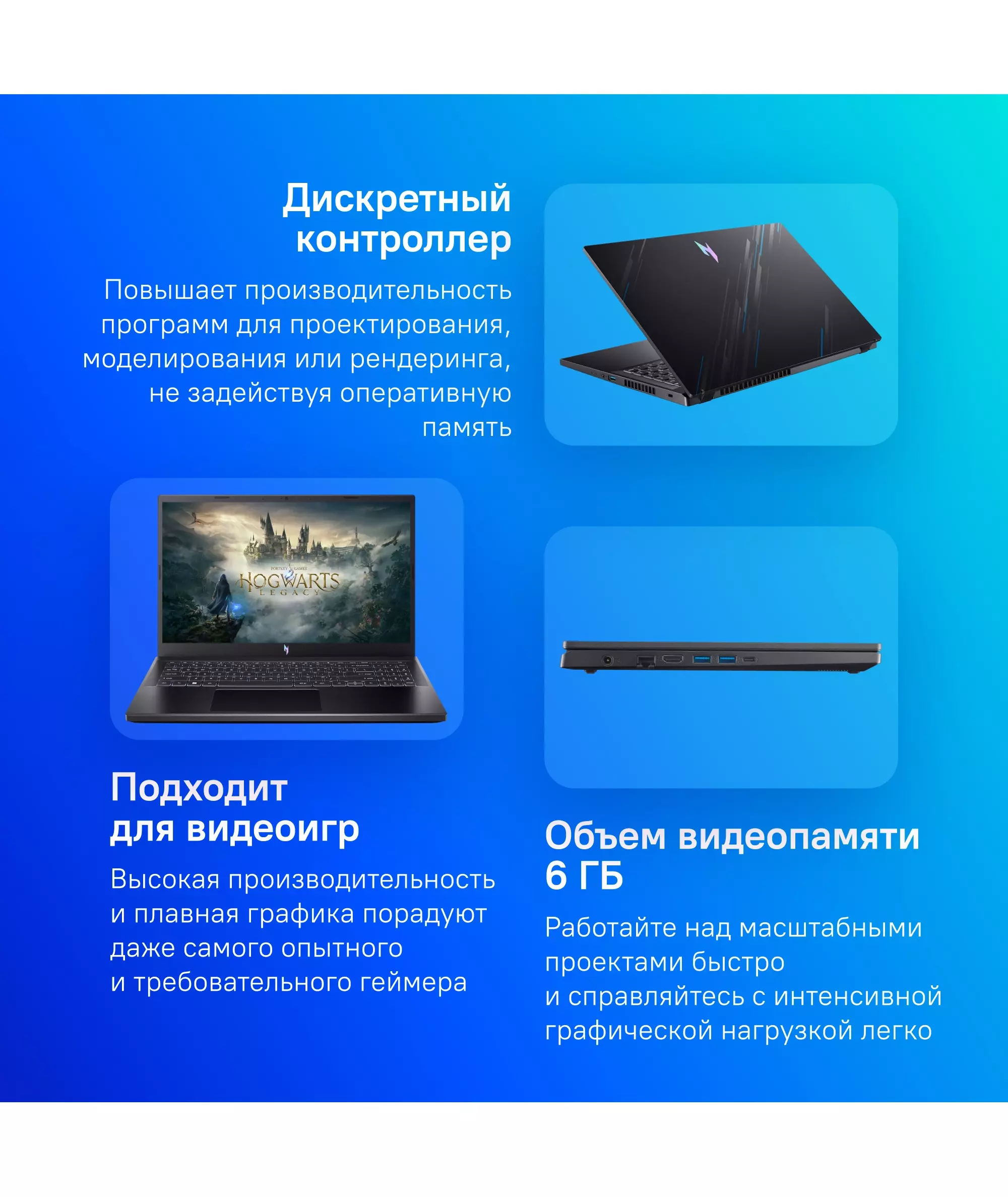 Ноутбук Acer Nitro V 15 ANV15-51-5637 Core i5 13420H 16Gb SSD1Tb NVIDIA GeForce RTX4050 6Gb 15.6" IPS FHD (1920x1080) без ОС black WiFi BT Cam [NH.QN8CD.005]